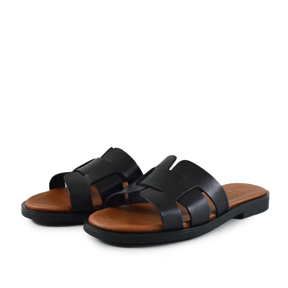 Stijlvolle dames slipper in zwart leer