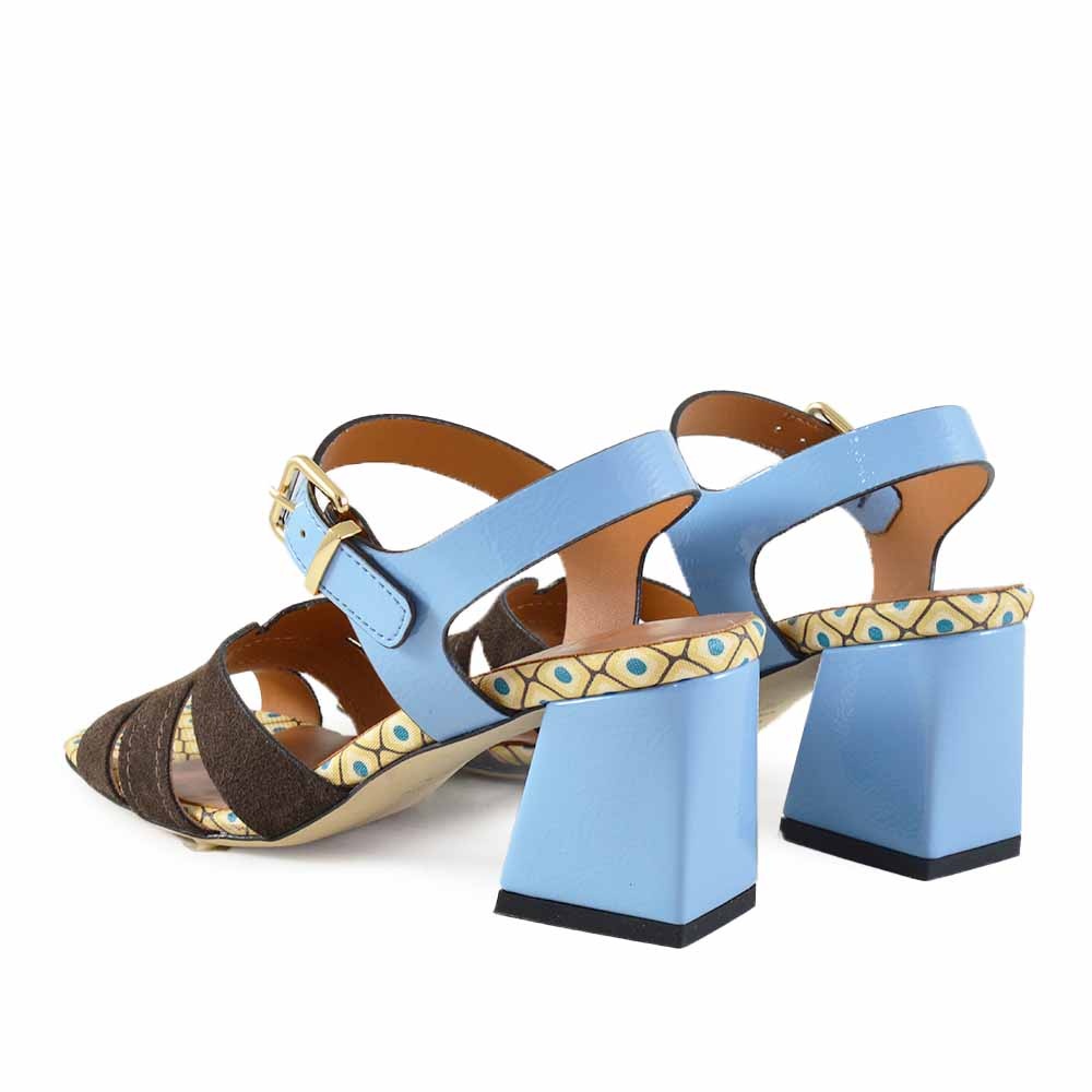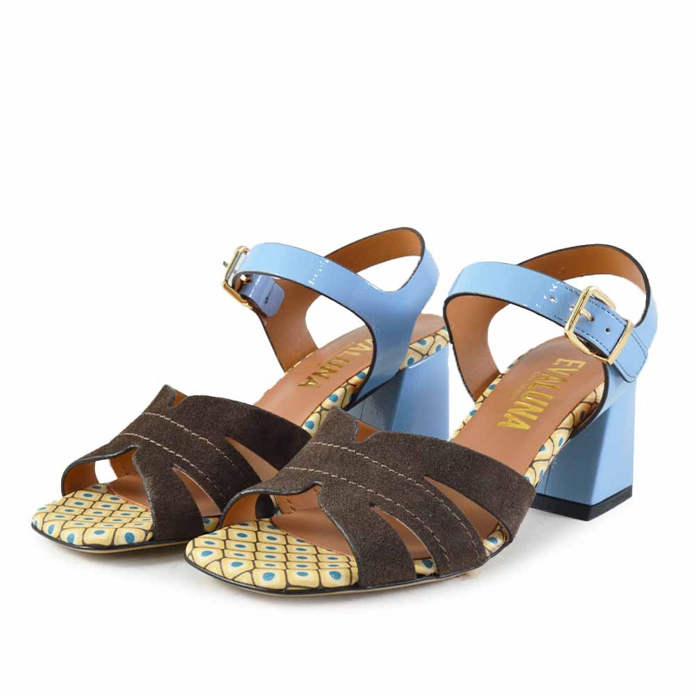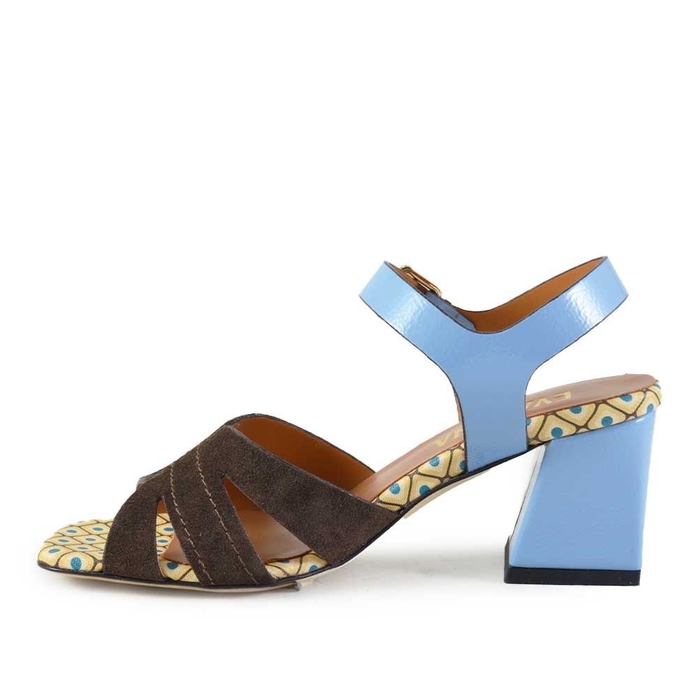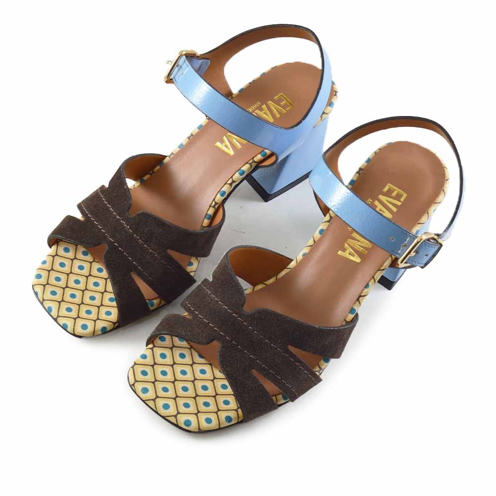 Wat deze Eva Luna sandaal bijzonder maakt, is de speelse mix van kleuren en materialen. De lichtblauwe hiel en bandjes vormen een mooi contrast met het bruine bovenwerk. Daarnaast zorgt het geprinte voetbed voor een opvallend en zomers detail. Deze combinatie maakt de sandaal perfect voor vrouwen die houden van een unieke en stijlvolle schoen.