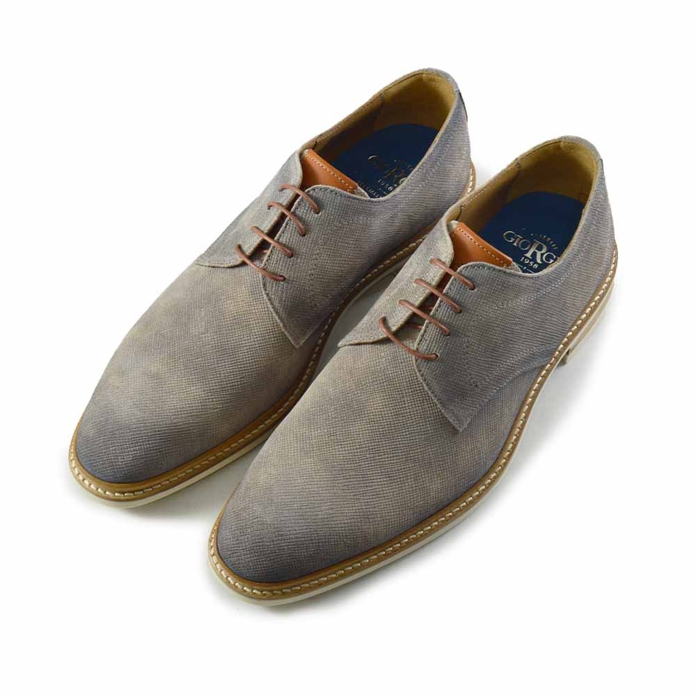 Deze Giorgio veterschoen is gemaakt in breedtemaat H, wat ideaal is voor heren met een bredere voet of voor wie extra comfort belangrijk is. De schoen sluit mooi aan zonder te knellen, waardoor je de hele dag door geniet van optimale ondersteuning. De hoogwaardige suede afwerking voelt zacht aan en vormt zich prachtig naar de voet.