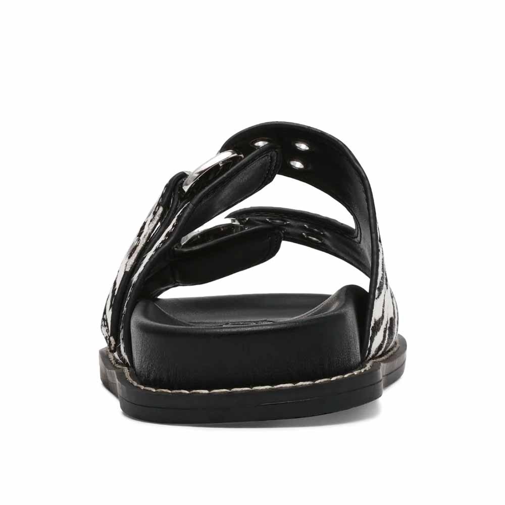 De Steve Madden Agent-L Zebra Zwart is dé eyecatcher voor je zomerse garderobe. De opvallende zebra print in zwart-wit maakt deze dames sandaal uniek, perfect om je outfit nét dat beetje extra te geven. Deze sandaal combineert stijl en lef, en past zowel bij een casual jeans als een luchtige zomerjurk.