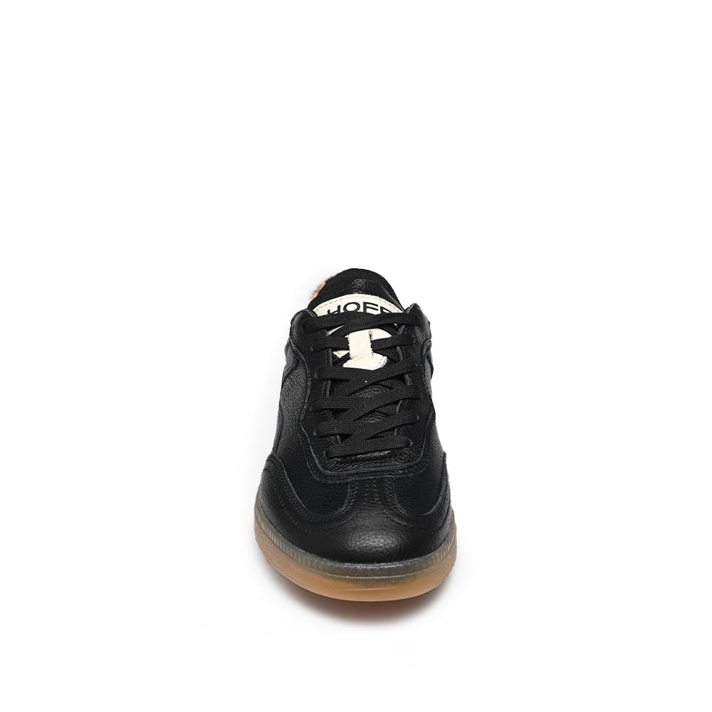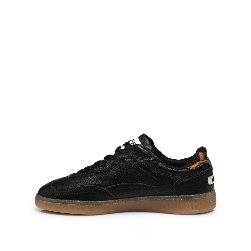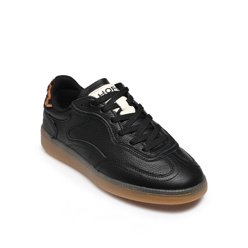 De HOFF Alley (L) Zwart is een stijlvolle leren dames sneaker die perfect combineert met elke casual of trendy outfit. Het zwarte leer geeft de sneaker een tijdloze uitstraling, terwijl het speelse panterdetail op de hak een modieuze twist toevoegt. Deze damessneaker is ideaal voor vrouwen die comfort en stijl willen combineren.
