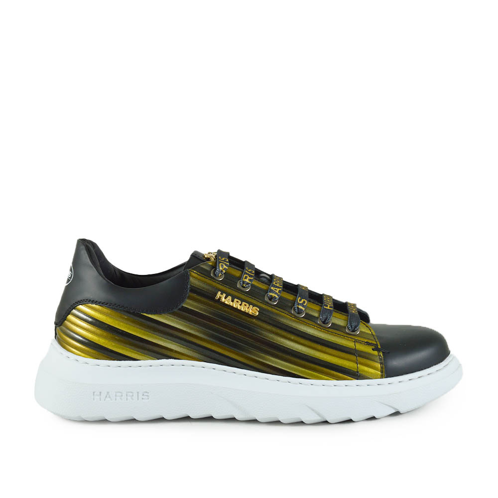 Voeg de Harris Atene Diagonale Gold Zwart heren sneaker toe aan je collectie en maak een stijlstatement!