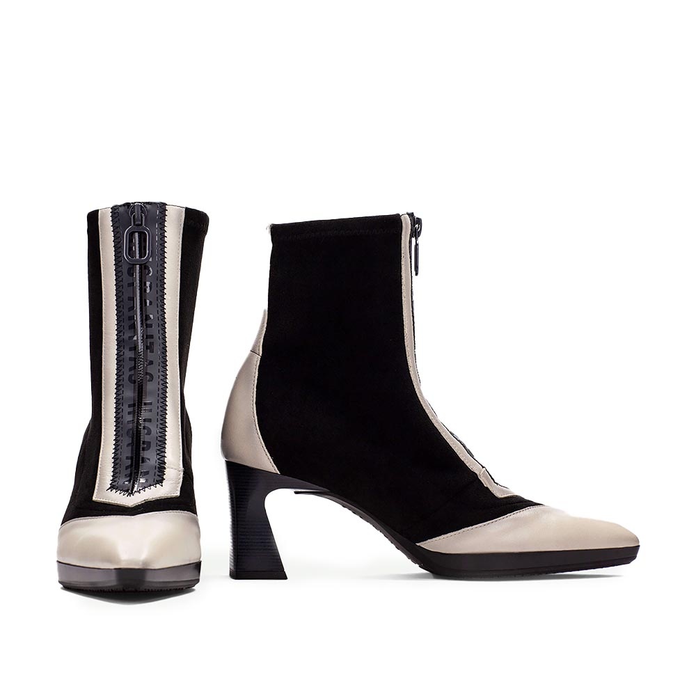De Hispanitas Atlanta Amara Zwart Beige dames enkellaars is een echte eyecatcher. Met de bijzondere ritssluiting over de wreef en het verfijnde ontwerp straalt deze enkellaars pure elegantie uit. Het gebruik van hoogwaardig suède en leer geeft de schoen een luxueuze uitstraling, terwijl de zachte tinten hem perfect maken voor zowel casual als chique outfits.
