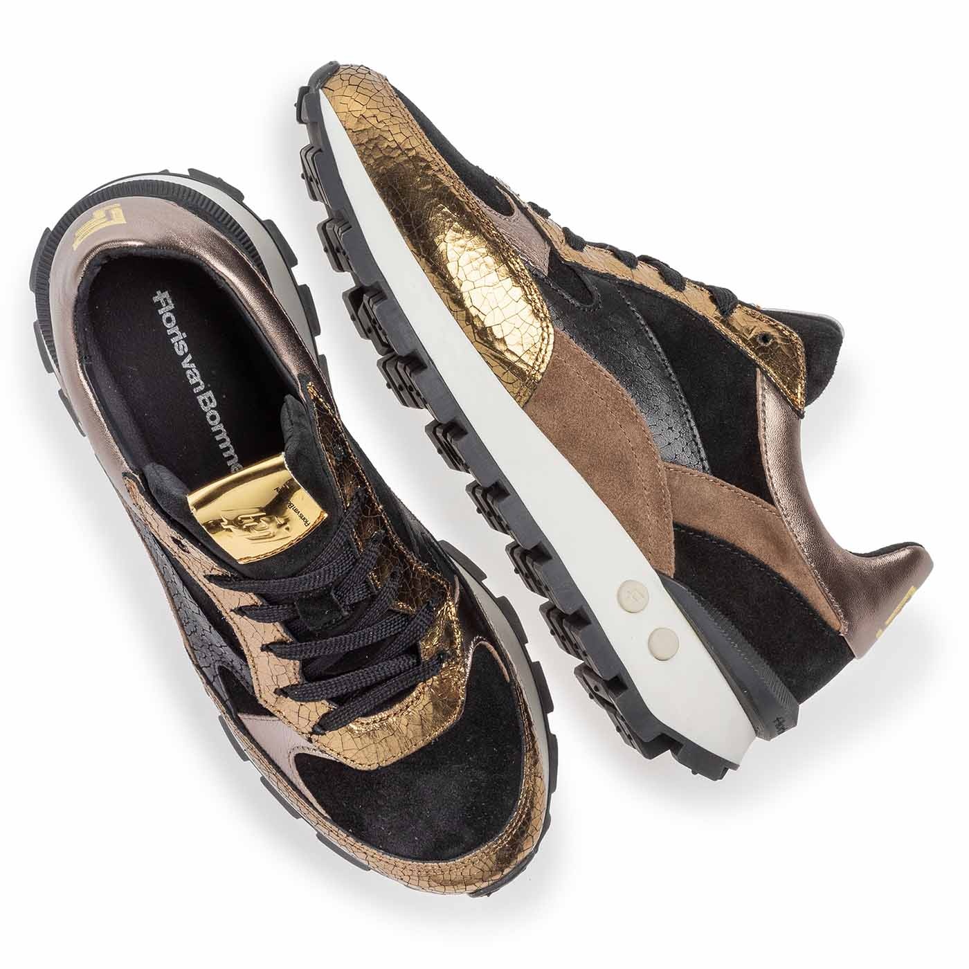 Of je nu een dagje naar kantoor gaat of een avondje uit, deze sneaker past altijd. De combinatie van goud, zwart en brons metallic leer maakt het makkelijk om te combineren met verschillende stijlen en kleuren. Zo geef je elke outfit een luxe en trendy uitstraling.