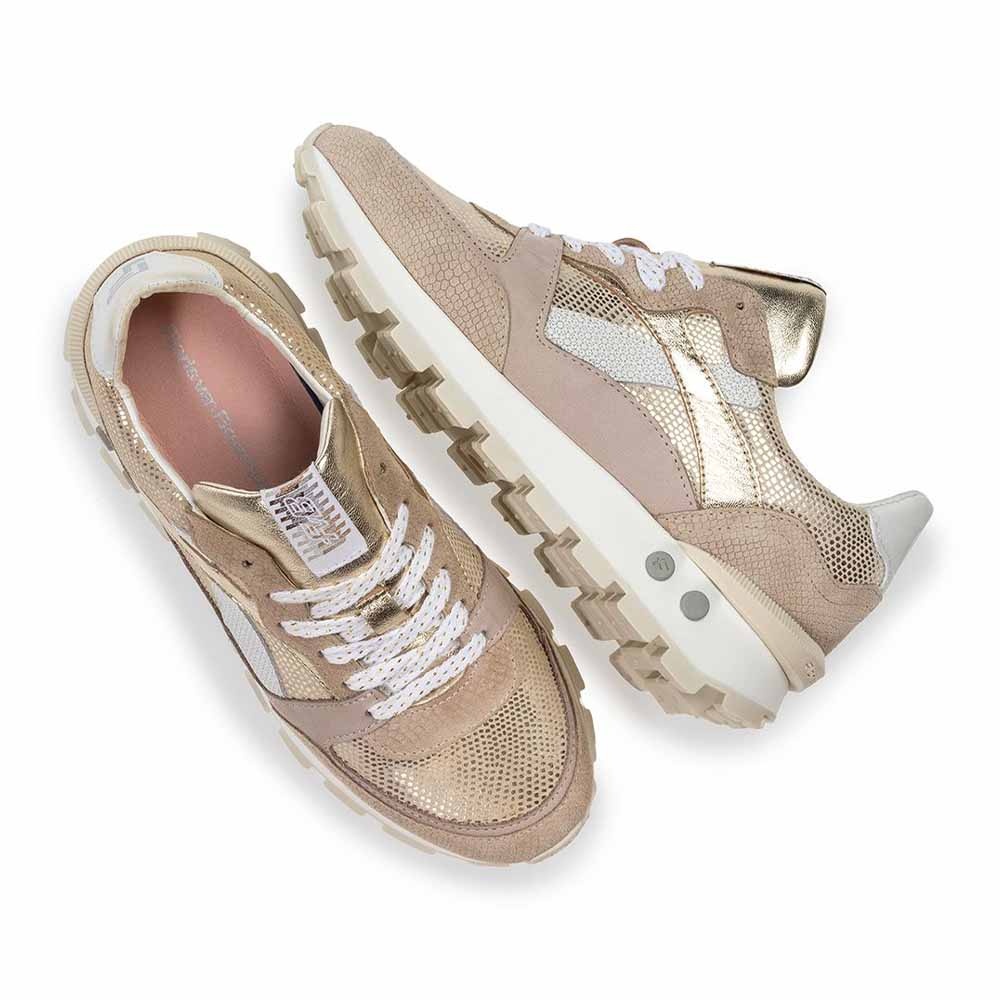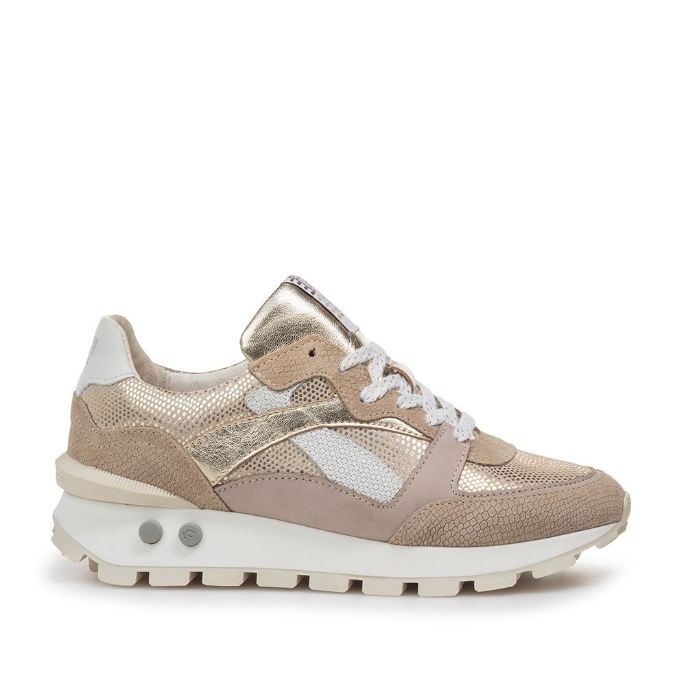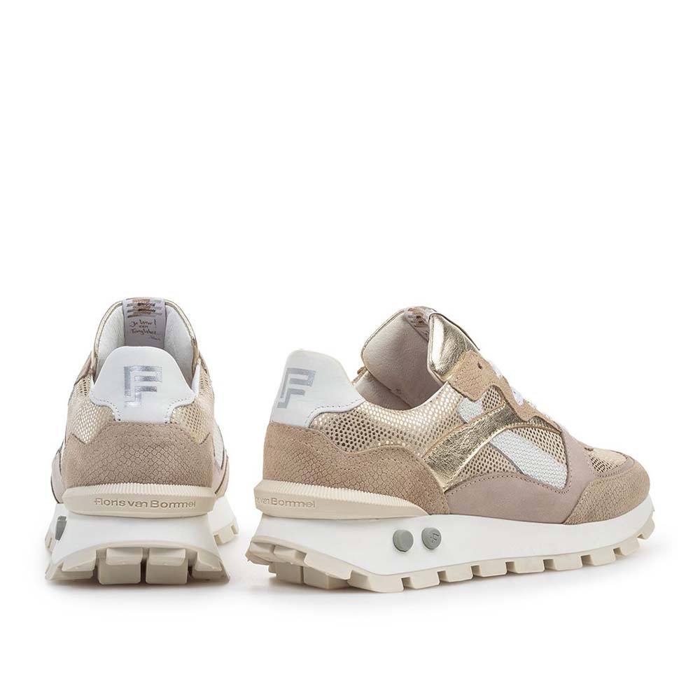De Floris van Bommel Blokki 07.05 Taupe is dé sneaker voor dames die comfort en stijl combineren. Het prachtige beige leer en beige suede met witte leren details geven deze schoen een moderne en frisse uitstraling, perfect voor de zomer. De stoere zool zorgt voor een sportieve look en biedt tegelijkertijd veel grip en stabiliteit.