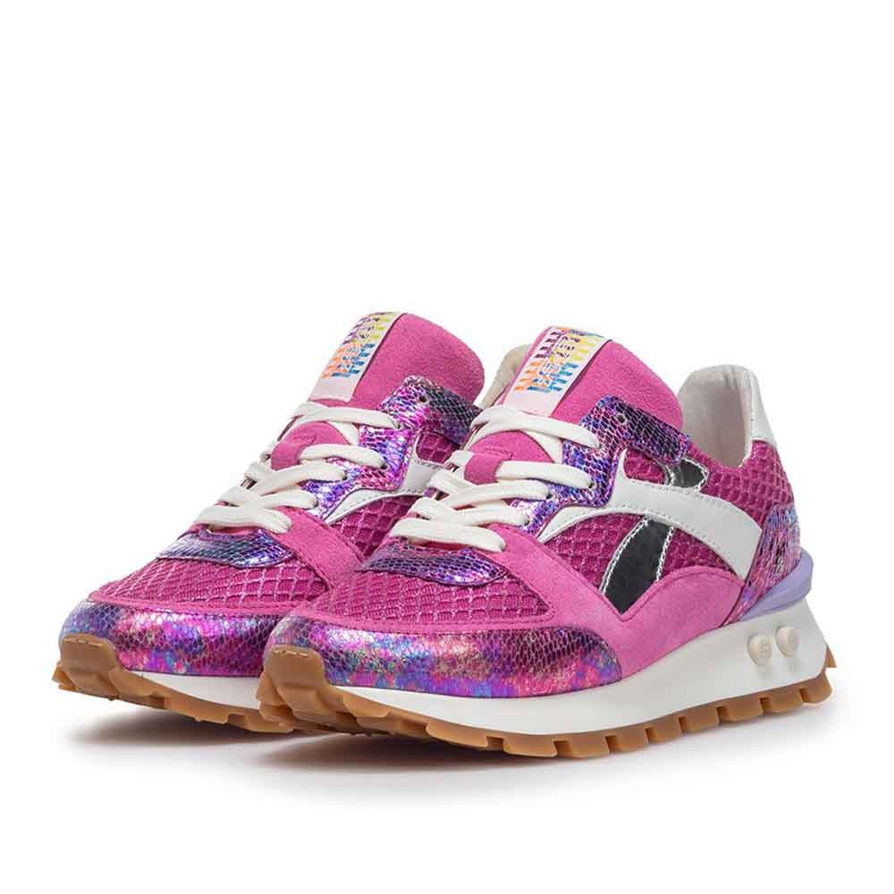 De Floris van Bommel Blokki 07.06 in roze is de ultieme zomer sneaker voor dames die stijl en comfort willen combineren. Met een stoere, robuuste zool en opvallende kleur roze springt deze sneaker direct in het oog. De unieke mix van materialen geeft een luxe uitstraling, terwijl de moderne details de sneaker een eigentijdse look geven.