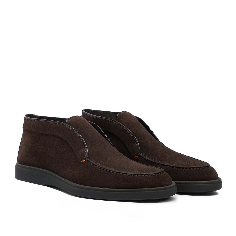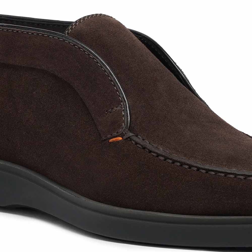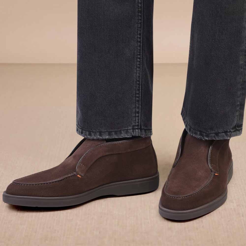 De Santoni Boneless bruine suède halfhoge heren instapper is een onmisbaar item voor elke stijlvolle man. Deze schoen combineert verfijnde elegantie met ongeëvenaard comfort, dankzij het gebruik van alleen het mooiste leer en vakmanschap uit Italië.