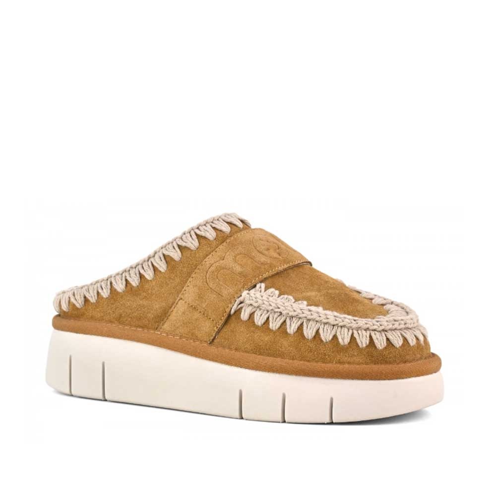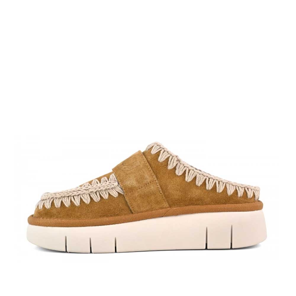 De Mou Bounce Clog II Cognac is een opvallende dames muil met het iconische Mou stiksel rondom de rand. Gemaakt van hoogwaardig cognackleurig suede straalt deze muil klasse en nonchalante stijl uit. Het brede bandje over de wreef is voorzien van subtiele branding en biedt extra comfort en stevigheid.