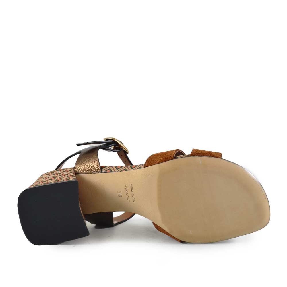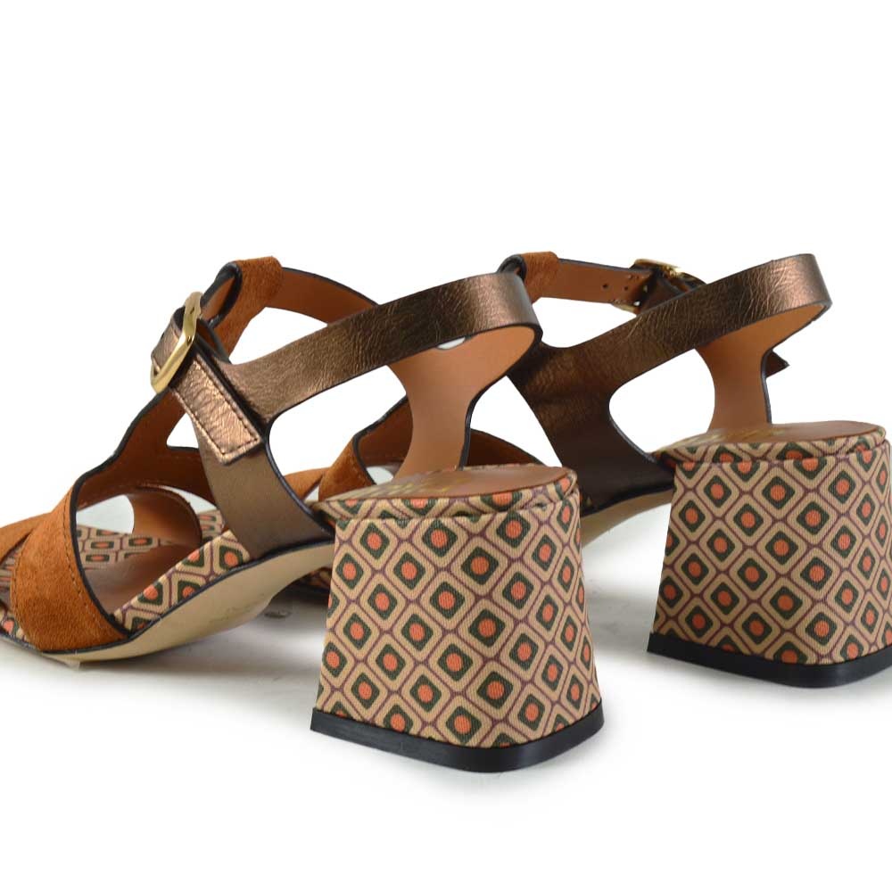 Cognac dames sandaal met blokhak