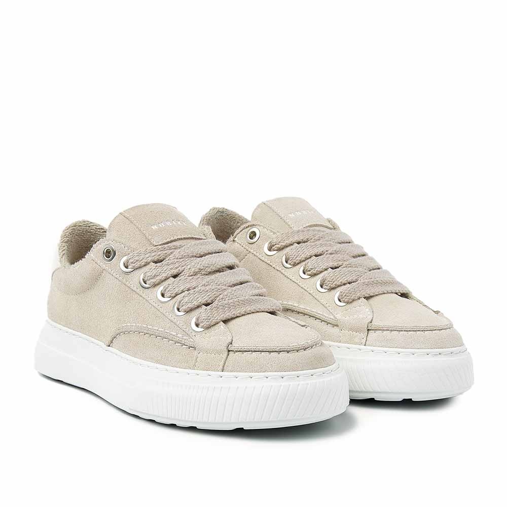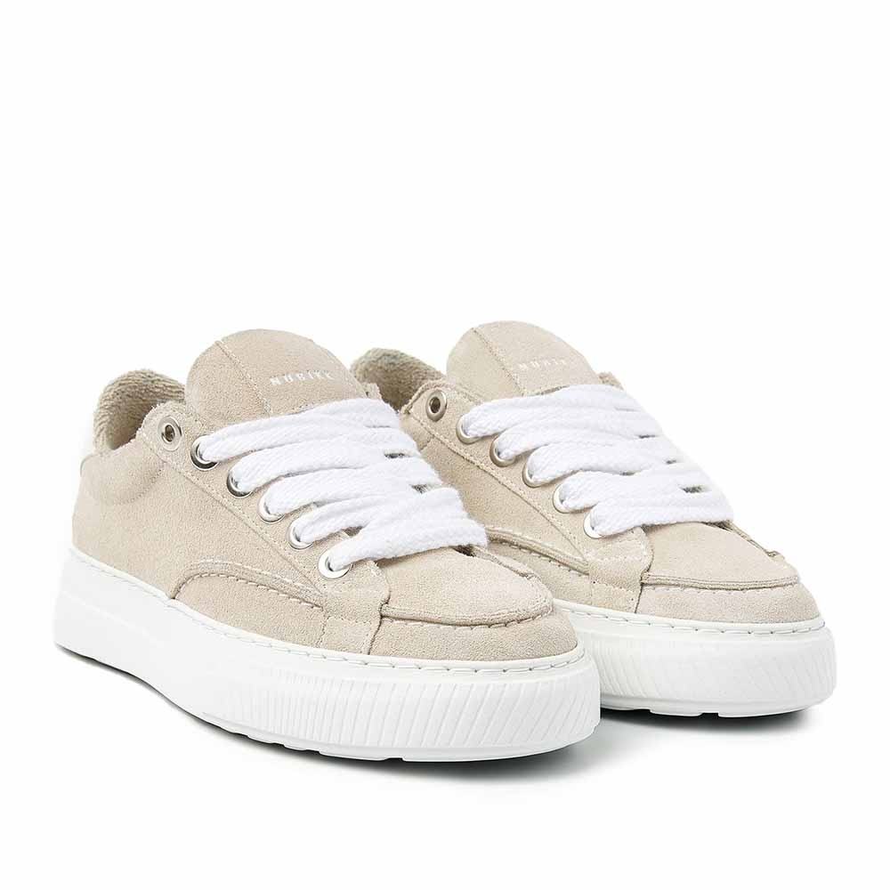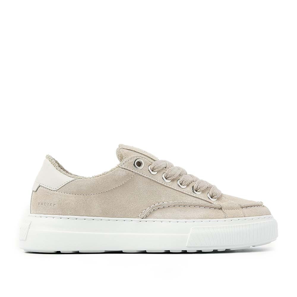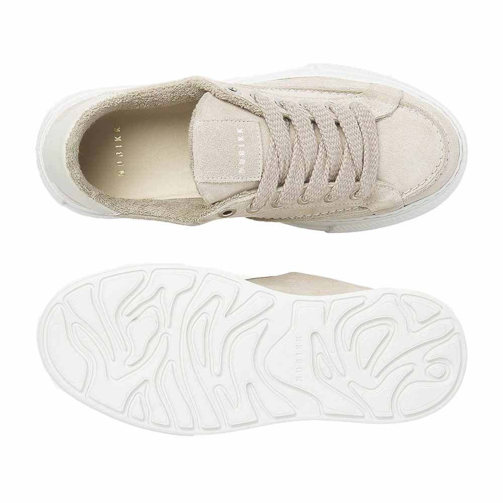 De Nubikk Caldera Tora (L) Beige is een echte eyecatcher voor de modebewuste vrouw. Deze moderne dames sneaker is uitgevoerd in luxe beige suède en heeft een stoere uitstraling door de strakke lijnen en stevige vormen. De dikke witte rechte zool zorgt voor een krachtige look die perfect past bij elke outfit.
