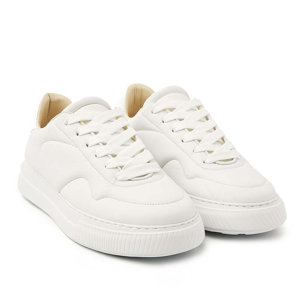 De Nubikk Caldera Rush (M) Wit is een stoere, moderne sneaker voor heren die comfort en stijl willen combineren. Het strakke witte leren bovenwerk geeft een frisse, zomerse uitstraling, terwijl de dikke veters en het chunky design een eigentijdse streetwear-look creëren.