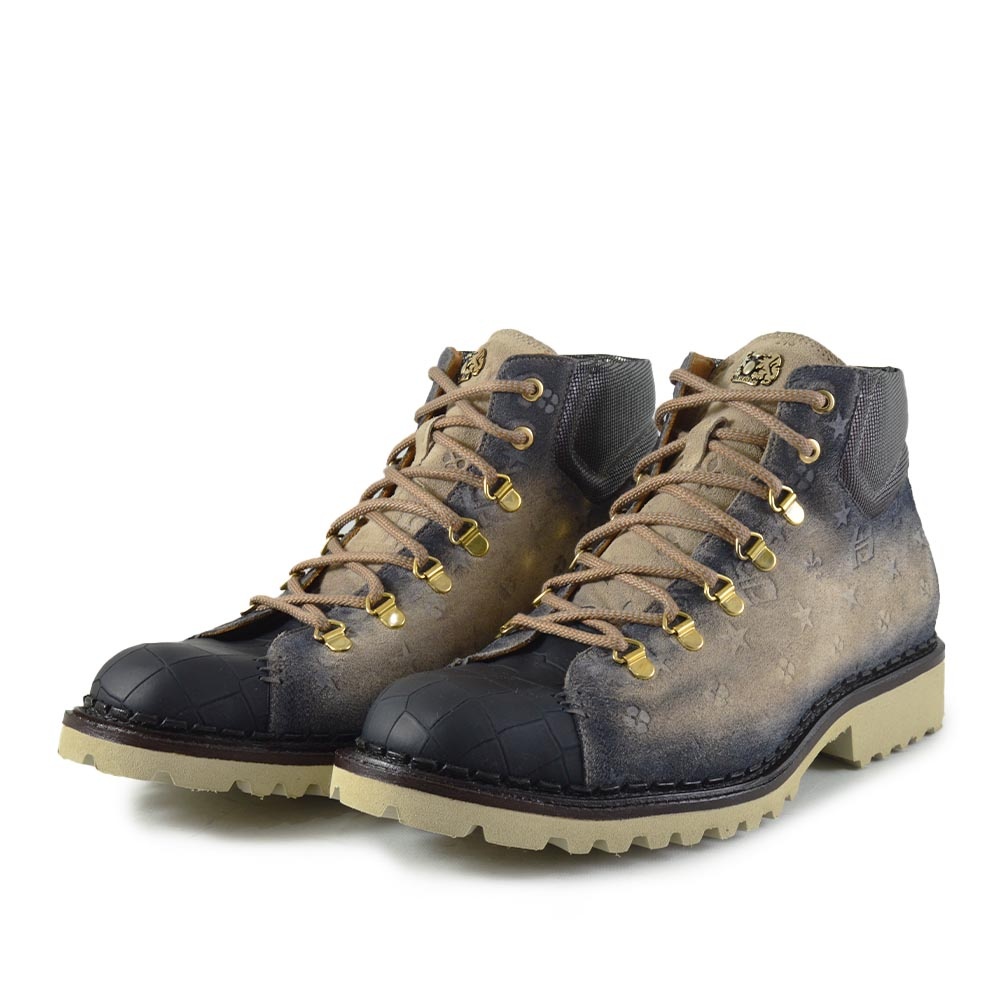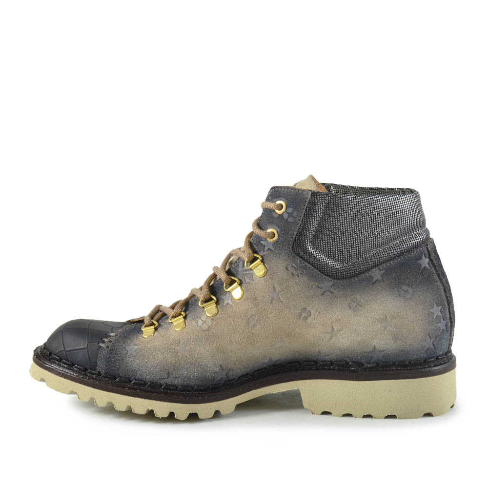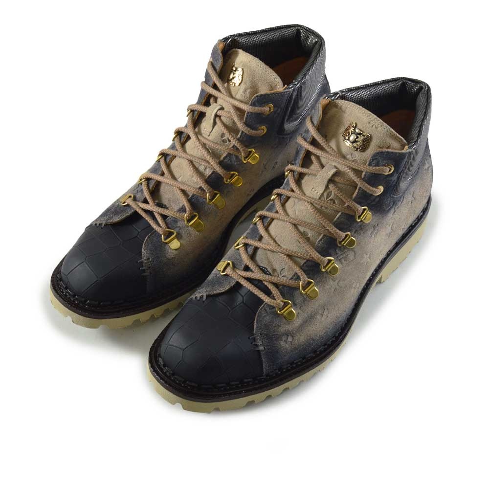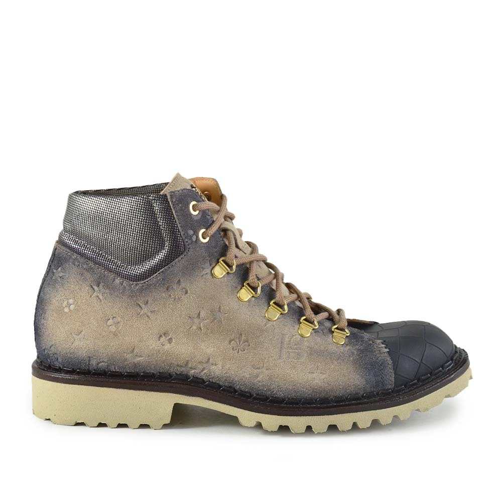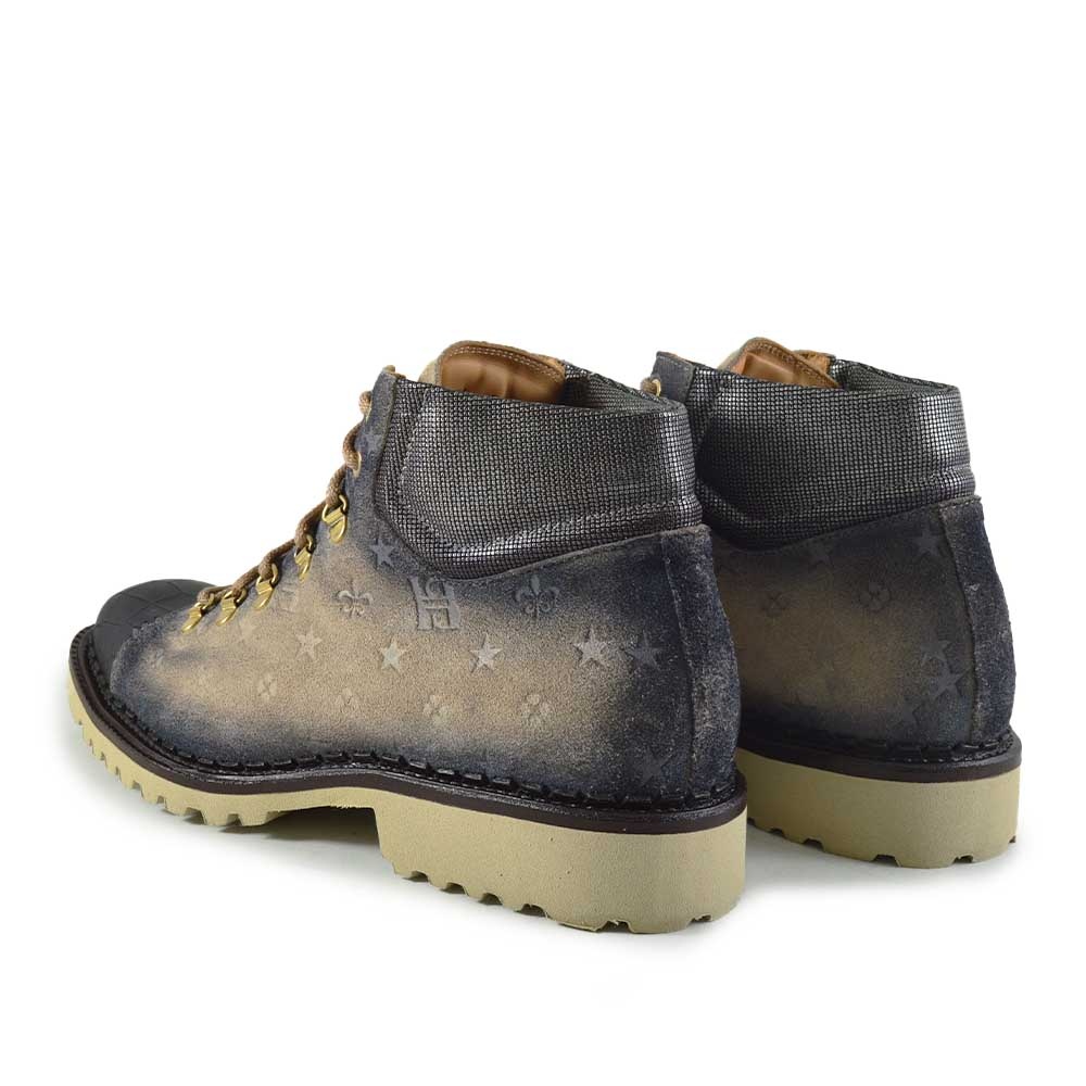 De Harris Canazei Beige Zwart is een uitgesproken veterboot voor heren die deze winter willen opvallen. De combinatie van beige suède met gave print op de zijkant, een contrasterende zwarte neus en glanzende gouden veteroogjes maakt deze boot een unieke verschijning. De afwerking is tot in de kleinste details verzorgd – precies zoals je van Harris gewend bent.