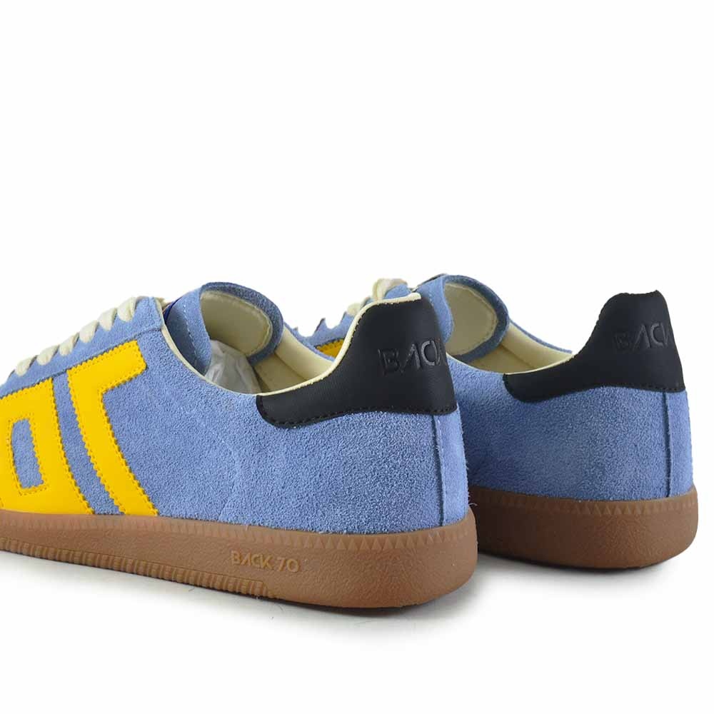 De Back 70 Cloud (M) Multi Lichtblauw is een moderne heren sneaker die stijl en comfort combineert. Het lichtblauwe suede geeft een frisse, zomerse uitstraling, terwijl de opvallende gele “70” op de zijkant en het zwarte hakdetail een herkenbare en trendy touch toevoegen. Deze sneaker past perfect bij zowel casual als smart-casual outfits.