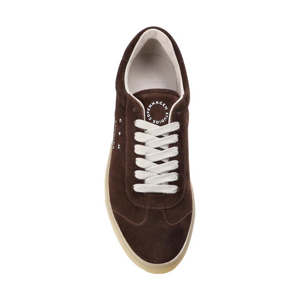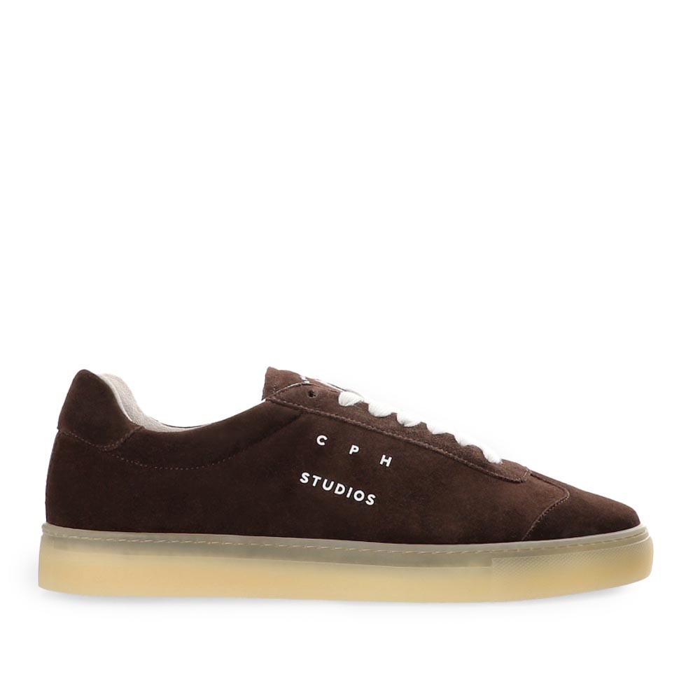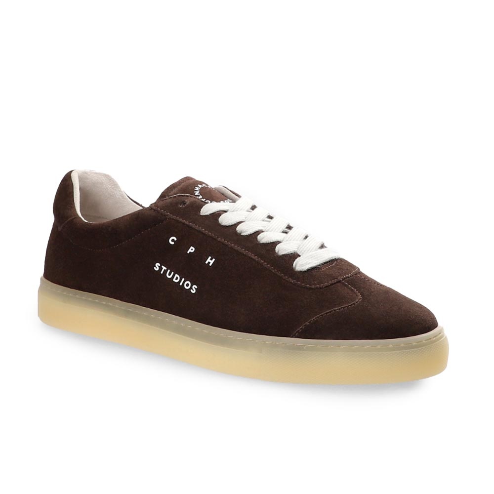 De CPH433M Bruin heren sneaker van Copenhagen Studios is een stijlvolle low-top sneaker, uitgevoerd in diep chocoladebruin suède. Deze rijke kleur geeft een verfijnde touch aan elke outfit en laat zich moeiteloos combineren met zowel casual als nette kleding.