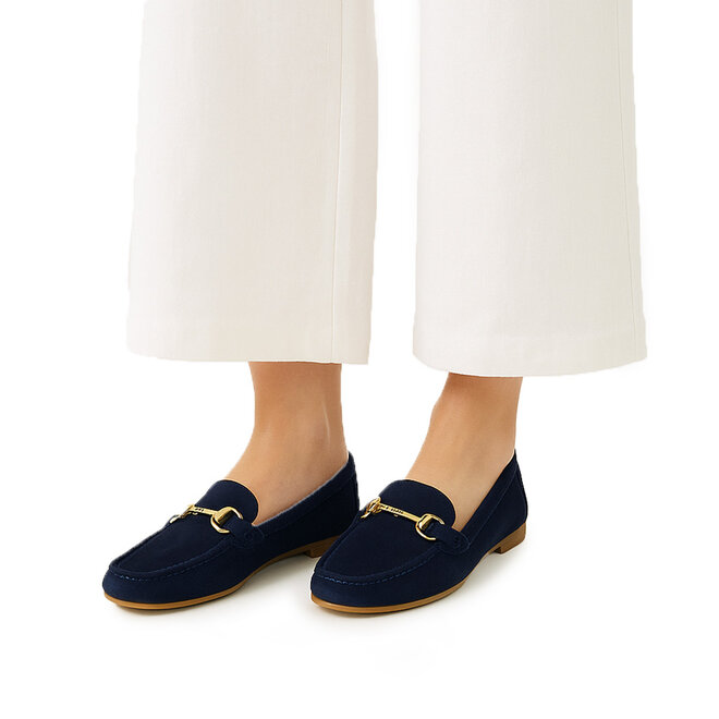 De Trento Dalia blauw suede dames mocassin is een echte must-have voor de zomer. De elegante rode kleur in combinatie met het gouden bitje op de wreef geeft deze mocassin een luxe en stijlvolle uitstraling. Perfect te combineren met zowel een casual als een chique outfit.