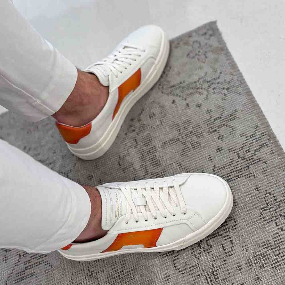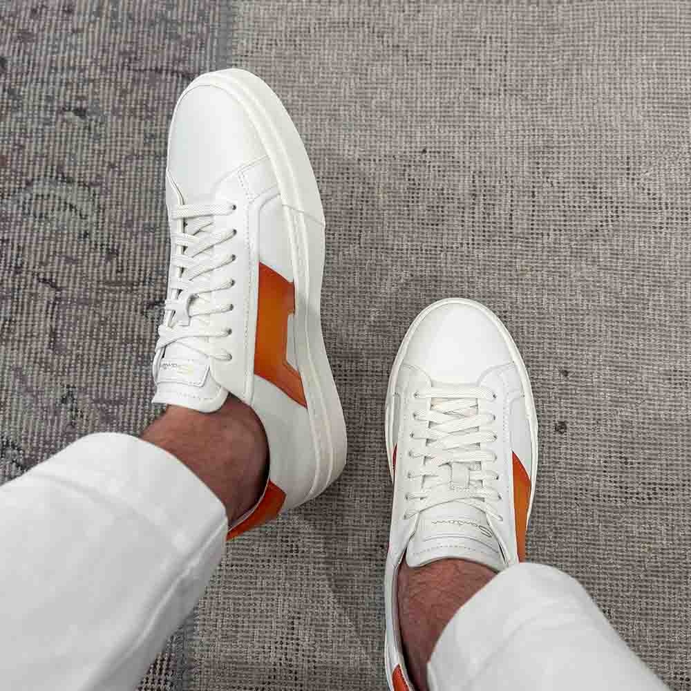 Santoni DBS Wit Oranje: Stijlvolle Elegante Sneaker voor Heren