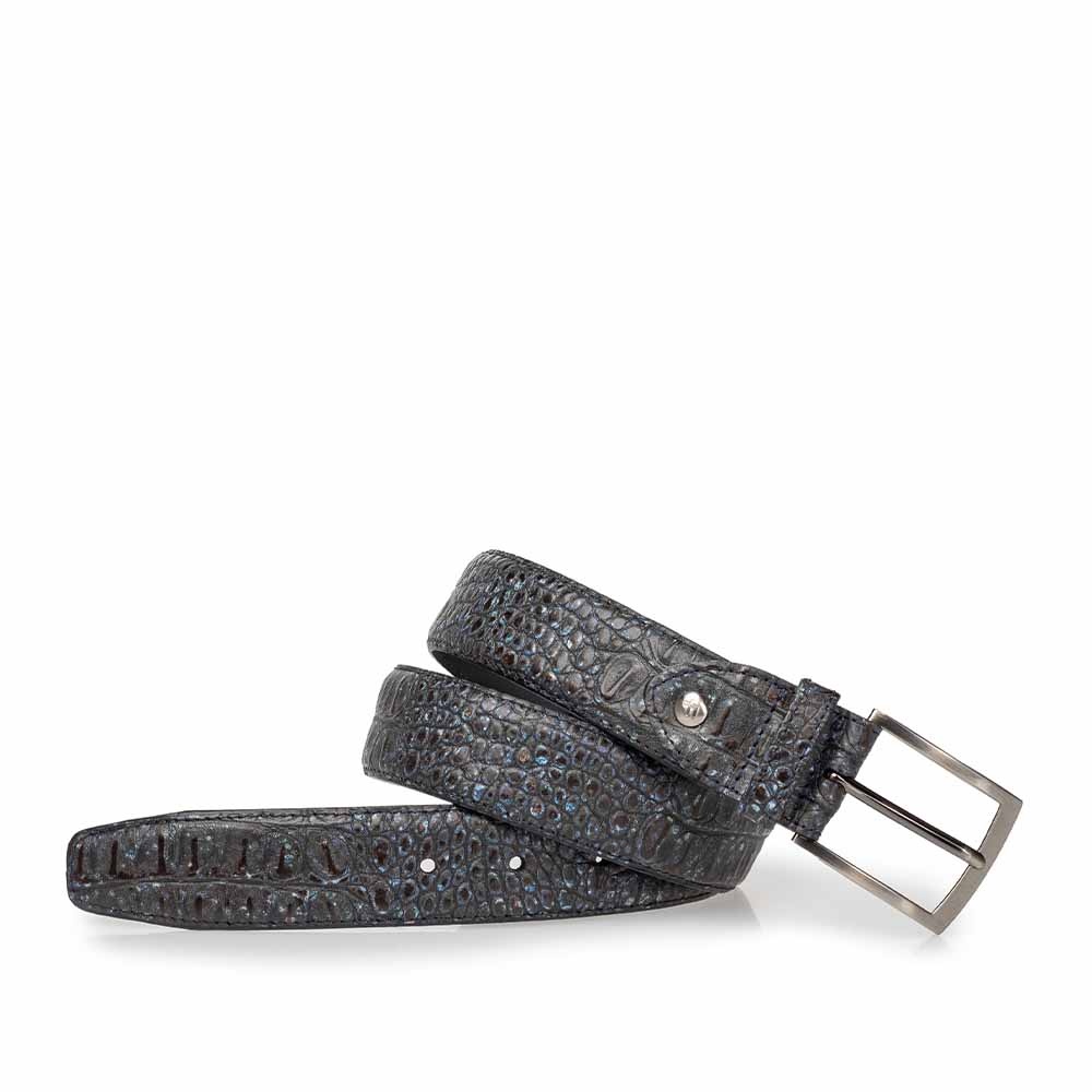 De Floris van Bommel De Belter 52.46 is een stoere en stijlvolle herenriem gemaakt van hoogwaardig blauw leer met een opvallende en unieke print. Dankzij het robuuste design en de luxe afwerking is dit de ideale riem voor wie zijn outfit een krachtig accent wil geven.