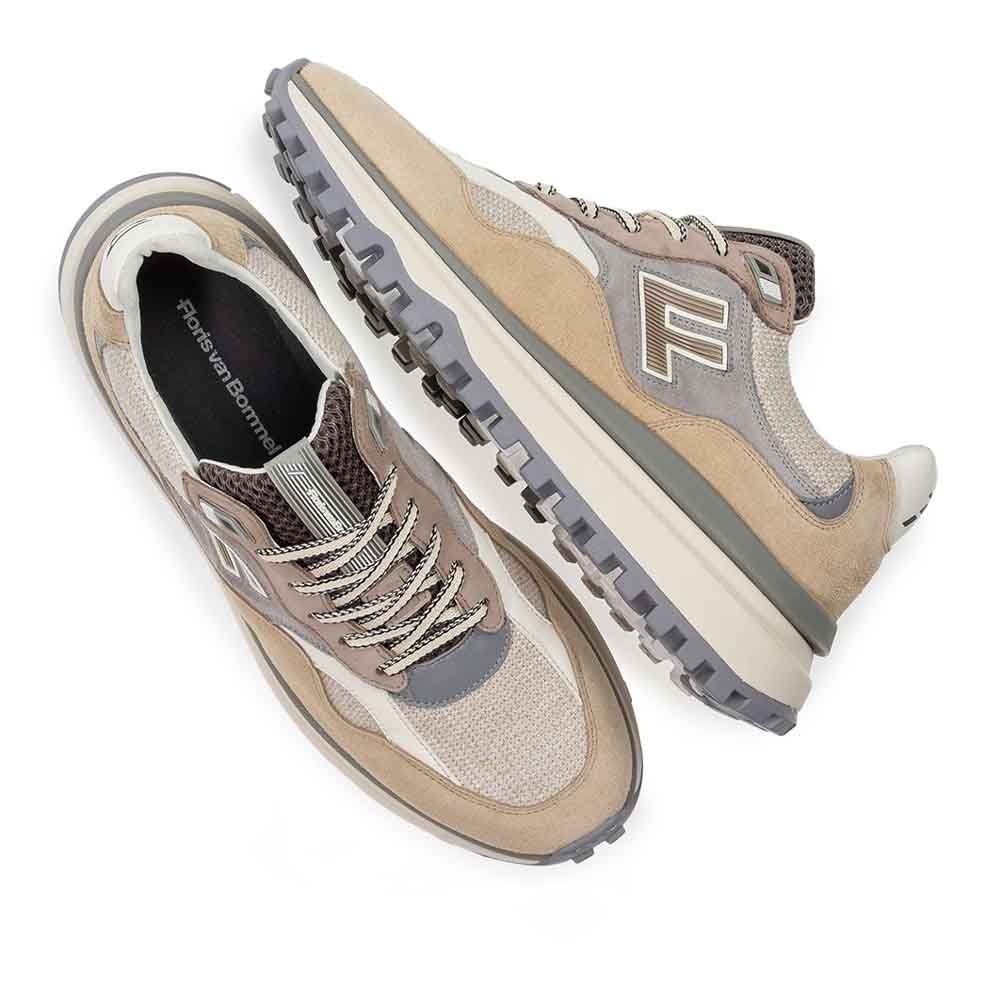 De Floris van Bommel De Gripper 01.11 Beige is een moderne heren sneaker met een krachtige, stoere uitstraling. De combinatie van hoogwaardig suede en glad leer in zachte beigetinten geeft de sneaker een luxe en eigentijdse look. Dankzij de vetersluiting oogt de schoen sportief en stevig, perfect voor mannen die houden van een opvallende maar stijlvolle sneaker.