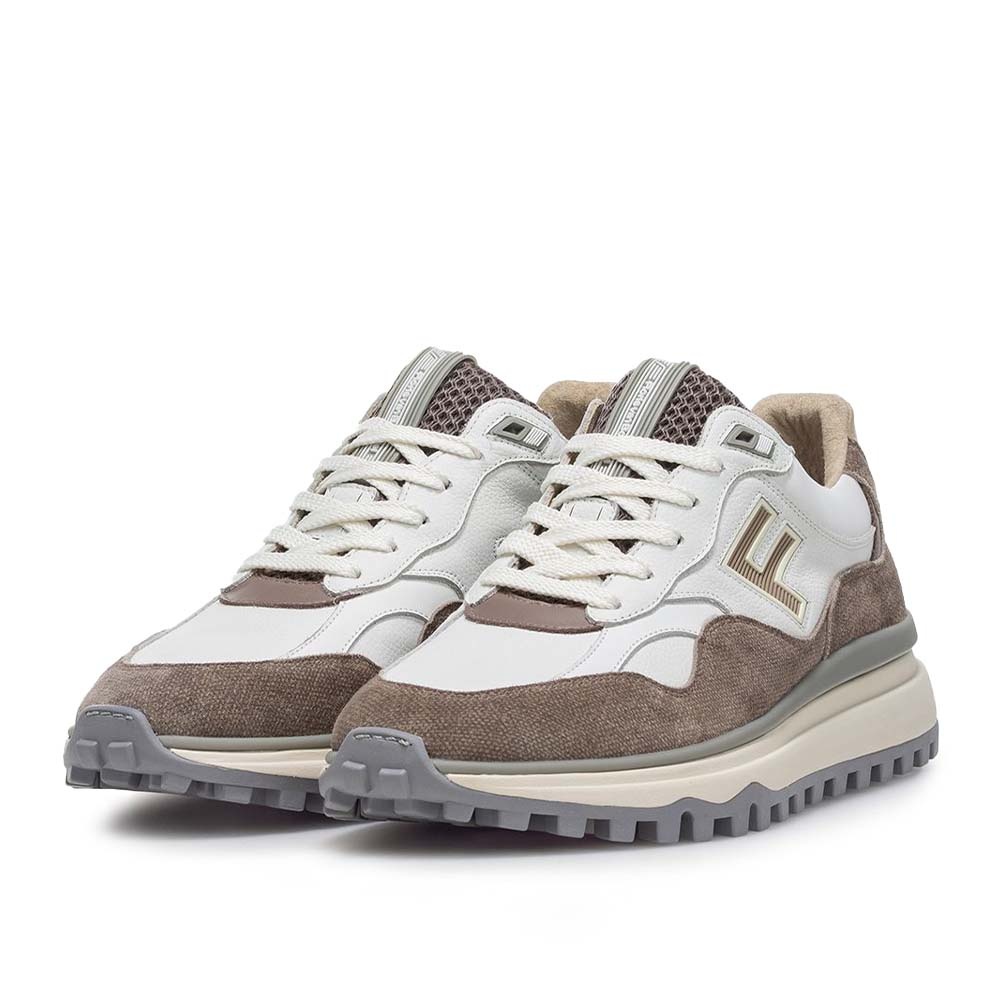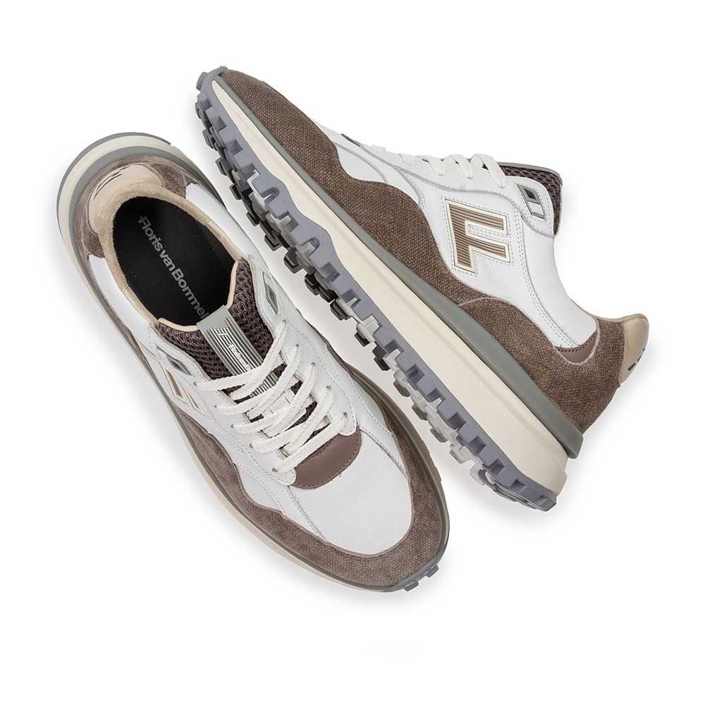 De Floris van Bommel De Gripper 01.16 Wit Taupe is een moderne heren sneaker die direct opvalt door zijn stijlvolle kleurencombinatie en luxe afwerking. Het bovenwerk is uitgevoerd in hoogwaardige materialen in wit- en taupetinten, wat zorgt voor een tijdloze en veelzijdige uitstraling. Het herkenbare F-design op de zijkant geeft de sneaker de kenmerkende Floris van Bommel signatuur.