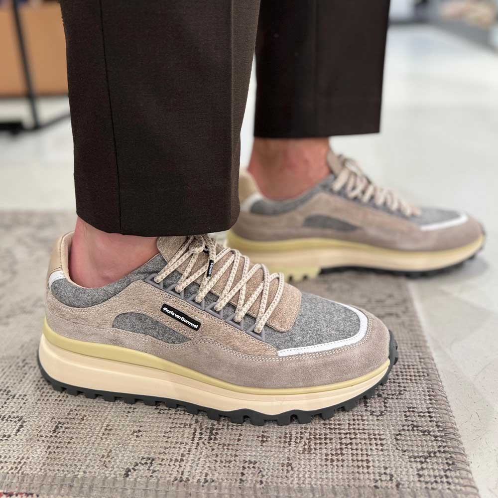 De Floris van Bommel De Gripper 03.02 is een moderne sneaker voor mannen die comfort en stijl willen combineren. Uitgevoerd in hoogwaardig beige suede, geeft deze schoen jouw outfit direct een modieuze upgrade. Het is een veelzijdige sneaker die perfect past bij casual én smart-casual looks.