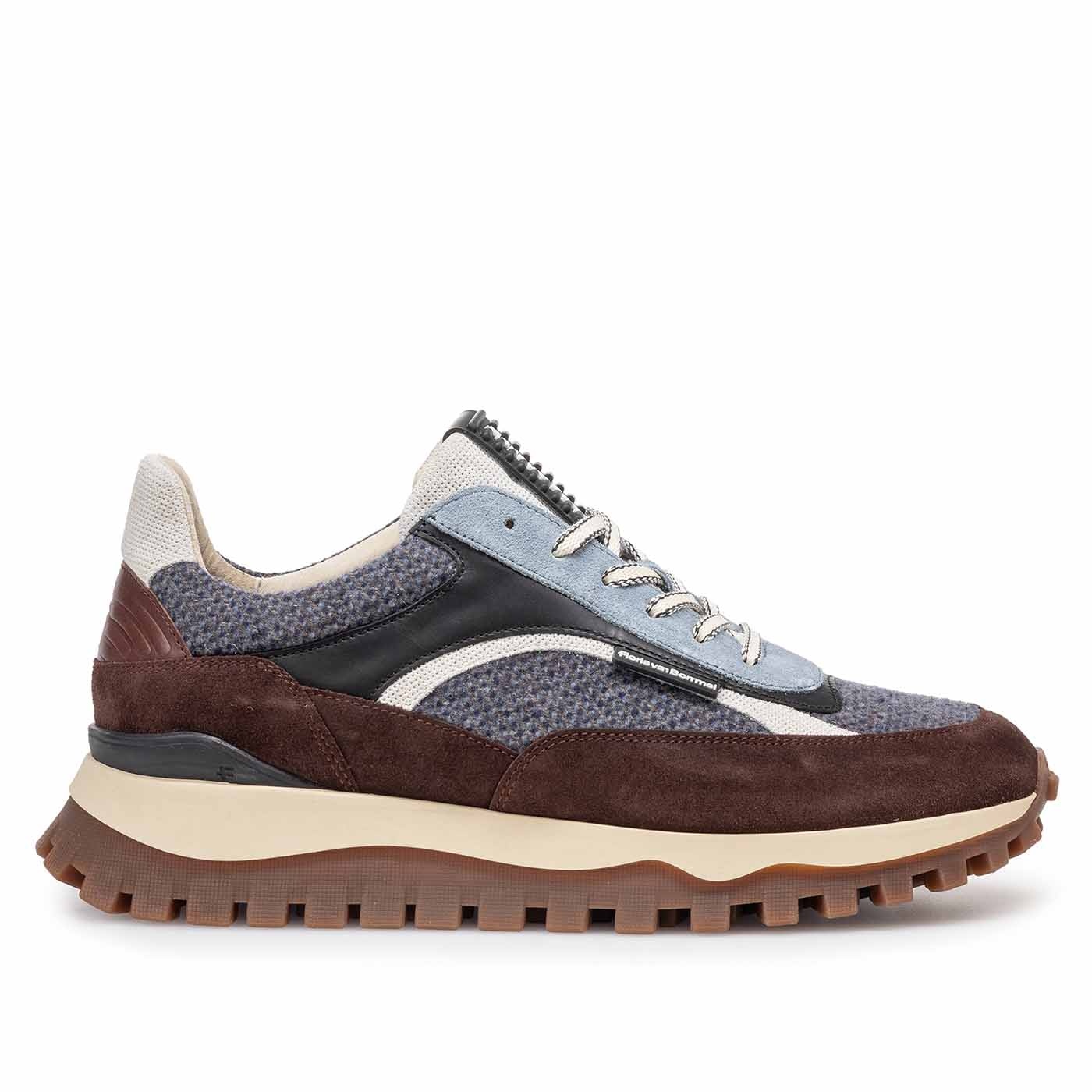 De Floris van Bommel De Grommer 05.09 is een stoere heren sneaker gemaakt van hoogwaardig grijs bruin suede. Het opvallende lichtblauwe detail geeft de schoen een frisse en moderne touch. Dankzij de makkelijke, neutrale kleur is deze sneaker ideaal te combineren met diverse casual en smart-casual outfits.