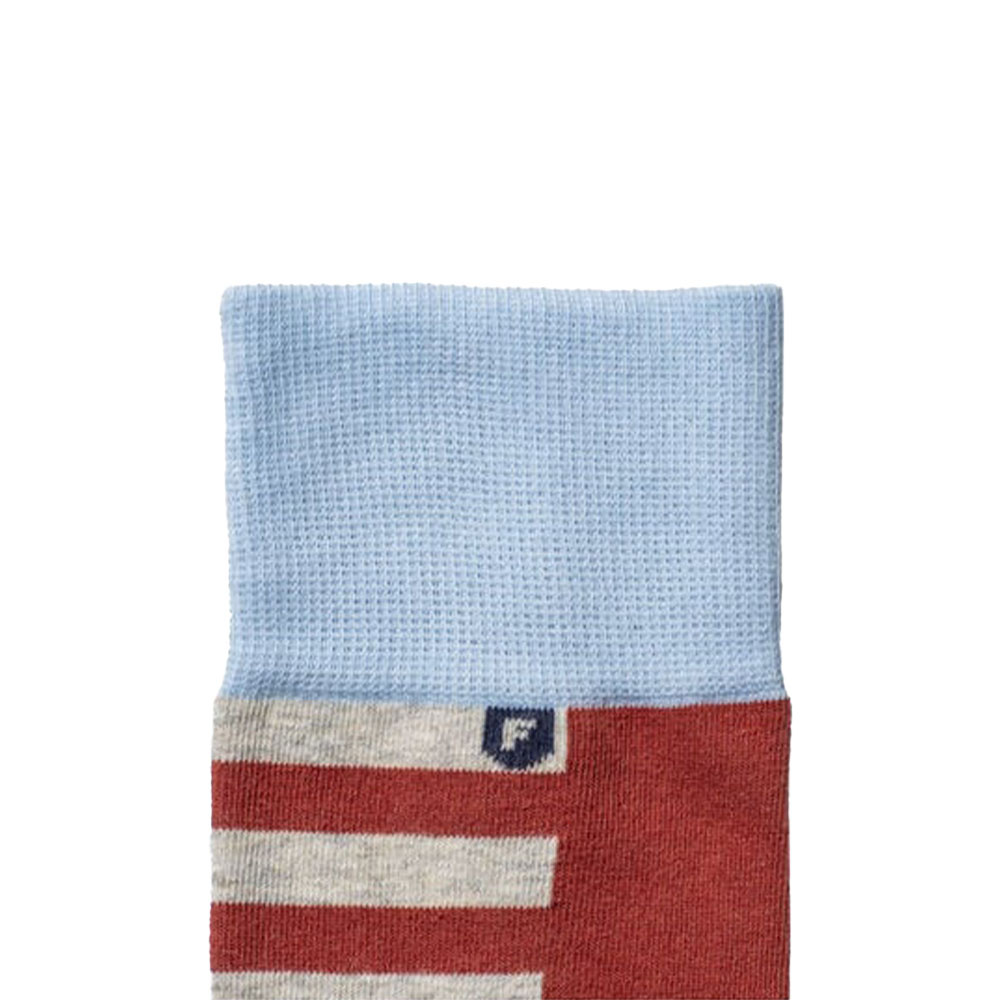 De Sokker 08.01 in lichtblauw en oranje van Floris Van Bommel is een sok van uitzonderlijke kwaliteit, ontworpen voor zowel stijl als comfort. Het gebruik van gegaseerd katoen zorgt voor een luxueuze uitstraling. Bij het gaseren worden alle pluizige vezeltjes weggebrand, wat het breisel glad en duurzaam maakt. Ideaal voor wie waarde hecht aan premium sokken.