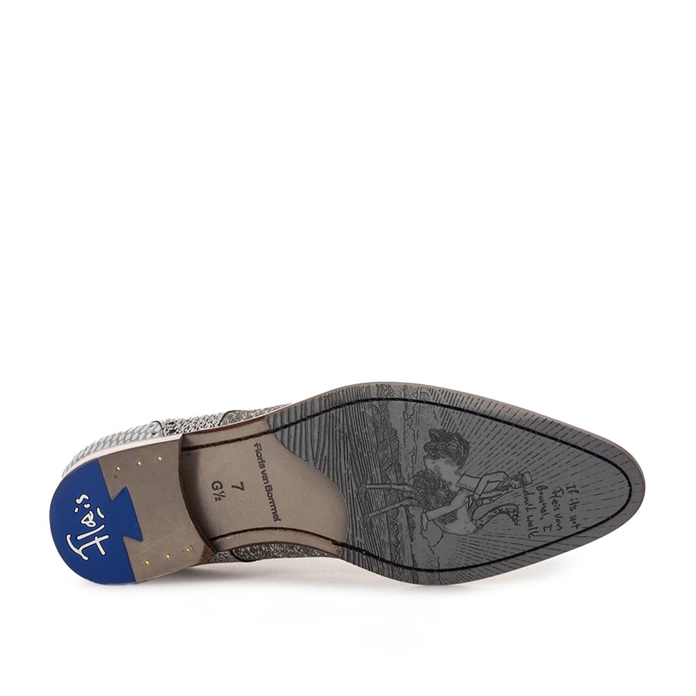 De Floris van Bommel De Stapper 39.63 Grijs is de perfecte keuze voor de moderne man die stijl en comfort wil combineren. Deze geklede heren veterschoen heeft een elegante klepsluiting en een subtiele, vrolijke print die over de hele schoen is verwerkt. Hierdoor krijgt de schoen een unieke uitstraling zonder zijn chique karakter te verliezen.