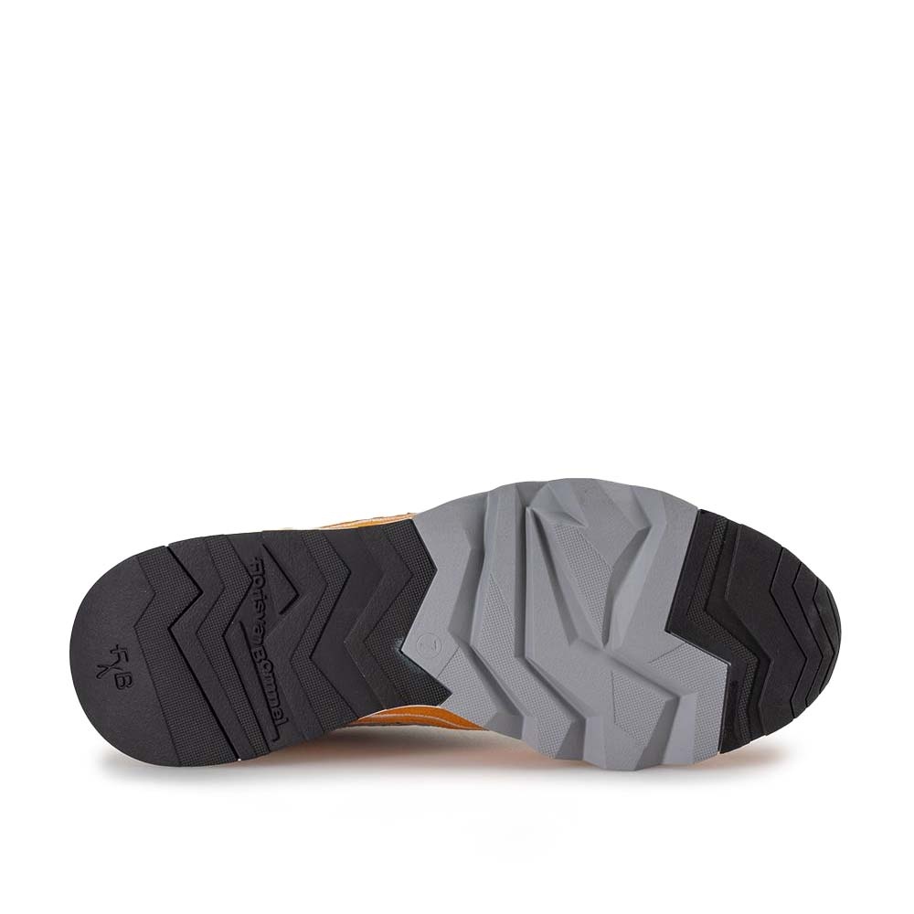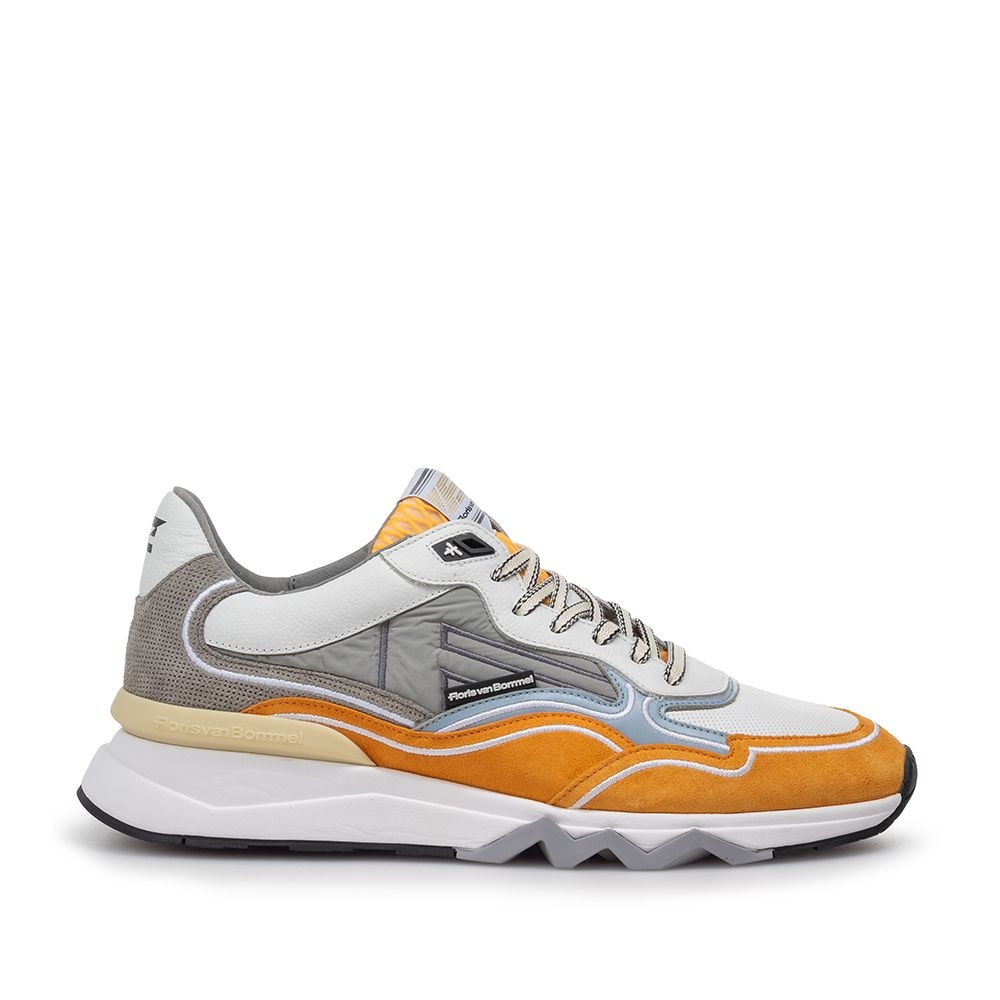 De Floris van Bommel De Zager 03.11 Oranje is de perfecte heren sneaker voor de zomer. Het zachte oranje suède geeft de schoen een frisse en vrolijke uitstraling, ideaal voor zonnige dagen. De bekende witte zagerzool zorgt niet alleen voor een sportieve look, maar biedt ook extra grip en comfort. De subtiele wit- en lichtblauwe details geven deze sneaker een moderne en herkenbare Floris van Bommel uitstraling.