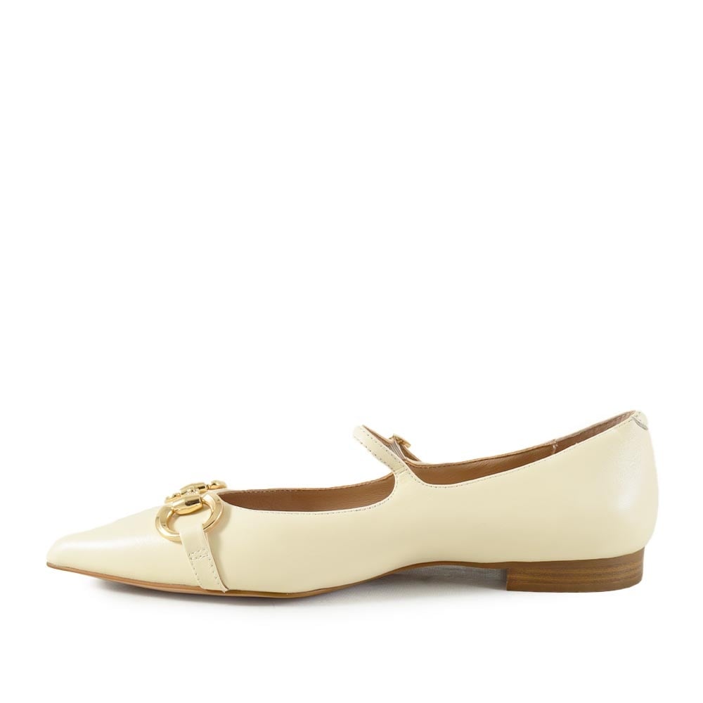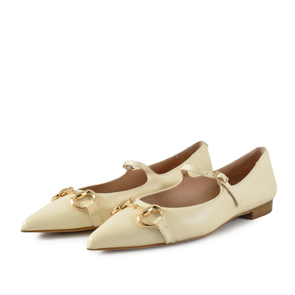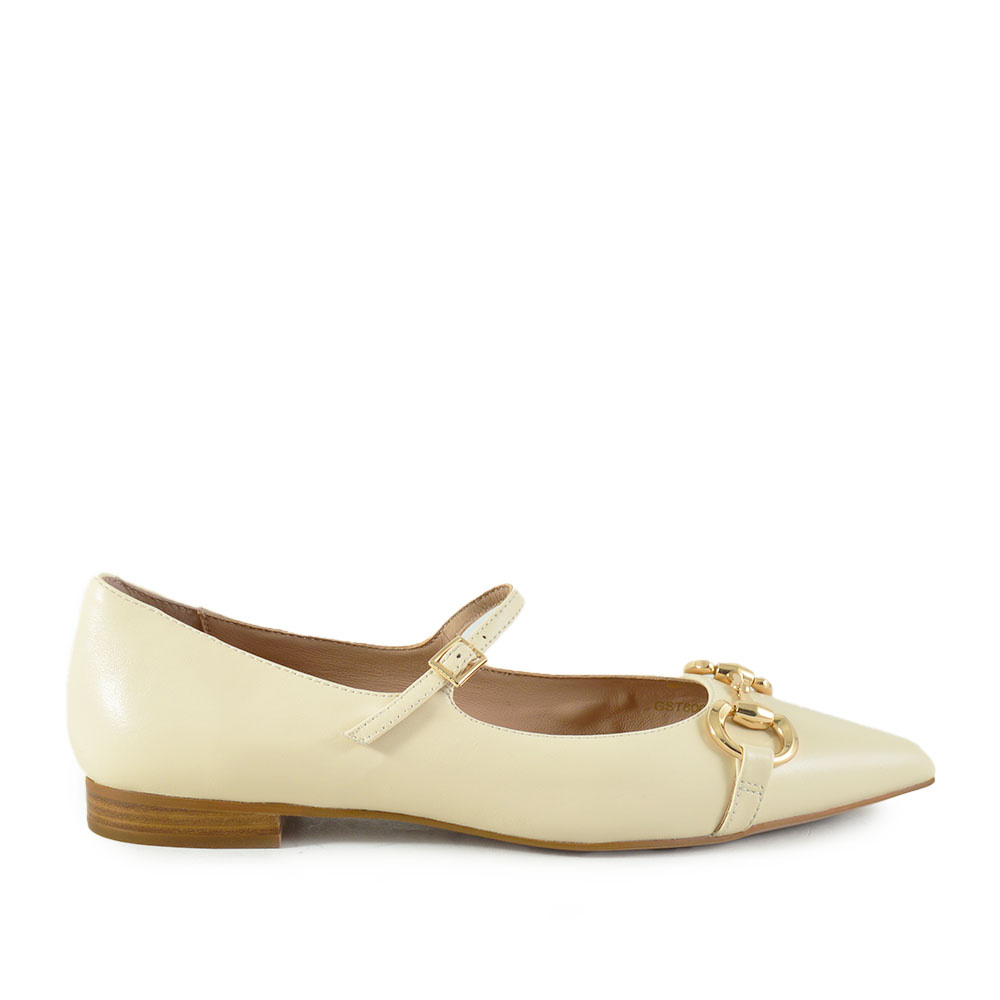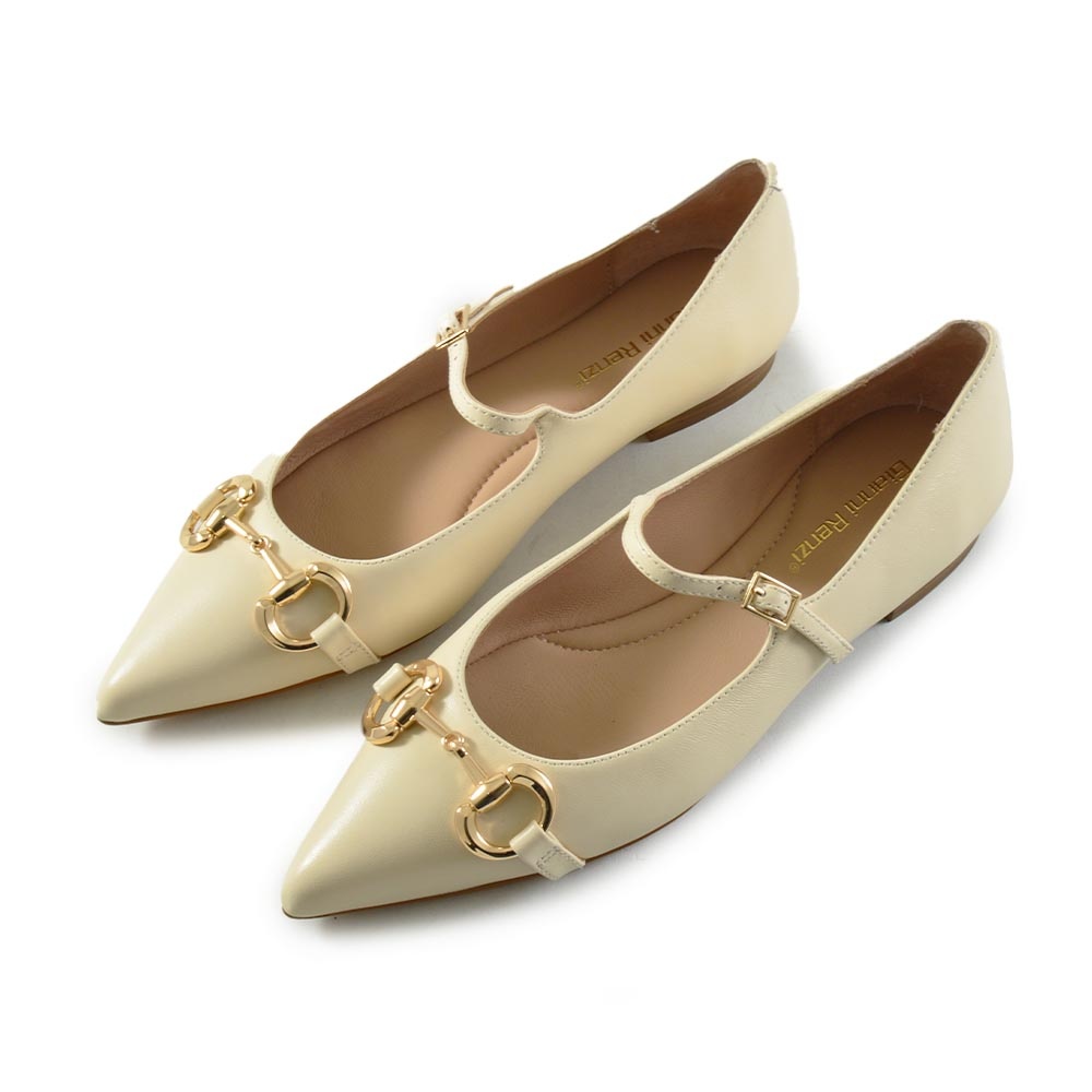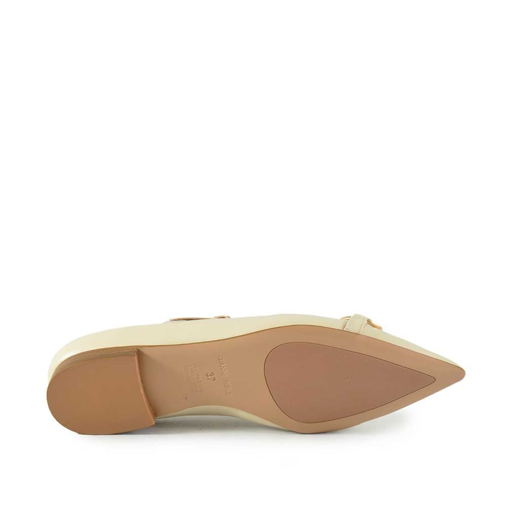 De Gianni Renzi Dolce ballerina in beige leer is een stijlvolle must-have voor elke vrouw deze zomer. Met zijn spitse neus, subtiel gouden bitje op de voorzijde en elegante gesp sluiting straalt deze ballerina klasse en verfijning uit. Ideaal voor zowel casual als formele gelegenheden.