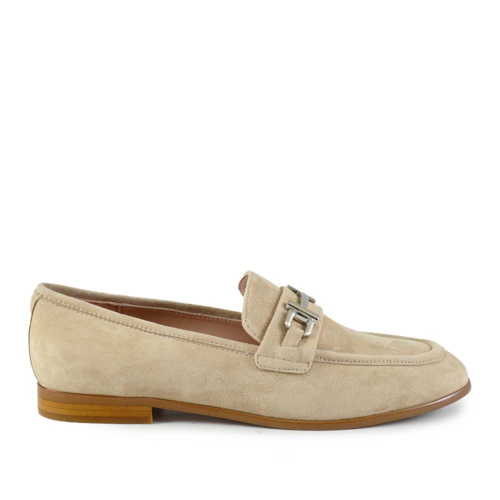 De Gianni Renzi Esmee beige suede dames loafer is een stijlvolle en elegante schoen die perfect past bij een zomerse en chique look. Het zachte beige suède geeft deze loafer een luxe uitstraling en maakt hem gemakkelijk te combineren met verschillende outfits. Of je nu kiest voor een nette broek, een zomerse jurk of een casual outfit, deze loafer voegt altijd een verfijnde touch toe.