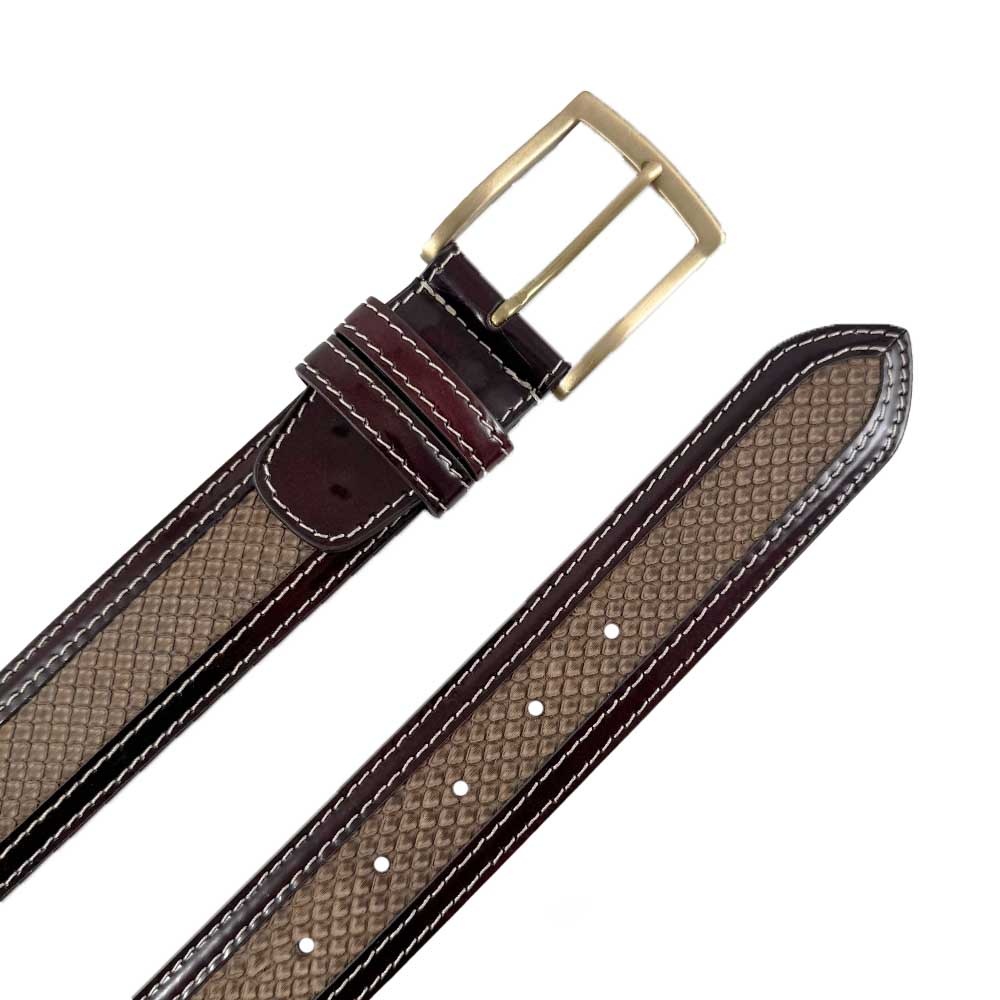 De Harris Fibbia Oxford Beige is een stoere en luxe herenriem van hoogwaardig beige leer gecombineerd met brodo leer en een opvallende lizard print. De unieke kleurcombinatie en het gedetailleerde design zorgen voor een karaktervolle en stijlvolle uitstraling, perfect voor de moderne man met oog voor detail.