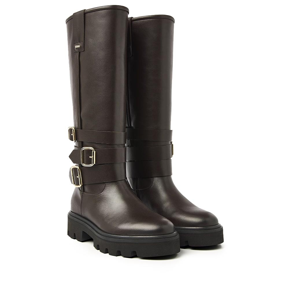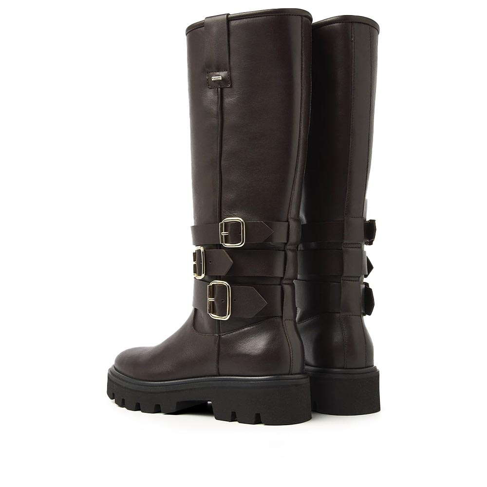 De Nubikk Frankie Lynn is een prachtige bruine leren dameslaars die je direct opvalt dankzij de stoere zwarte zool en de stijlvolle ronde leest. Deze laars is gemaakt van hoogwaardig leer, wat zorgt voor een luxe uitstraling en duurzaamheid. De drie opvallende gouden gespen maken deze laars tot een trendy eyecatcher die je outfit meteen een modieuze boost geeft.