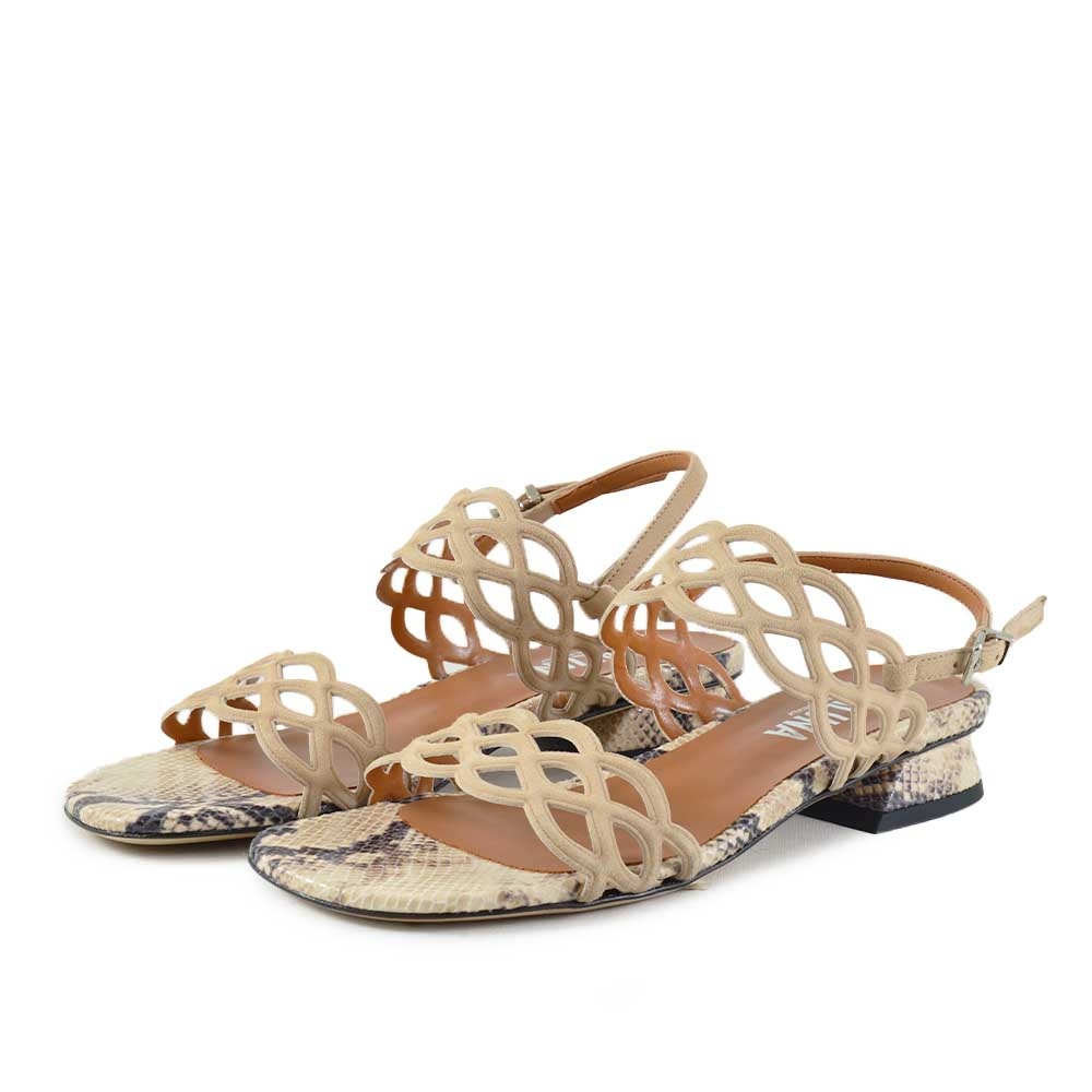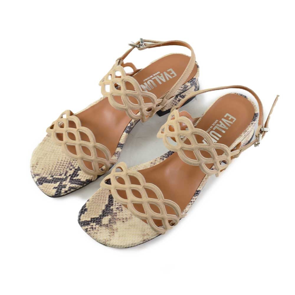 Wat deze Eva Luna sandaal extra bijzonder maakt, zijn de verfijnde details in het bovenwerk en de opvallende lizard print op het voetbed. Deze combinatie zorgt voor een speelse en luxe uitstraling. De sierlijke bandjes geven de sandaal een vrouwelijke look, terwijl de subtiele print zorgt voor een modieuze twist. Perfect voor vrouwen die houden van een elegante maar unieke zomerschoen.