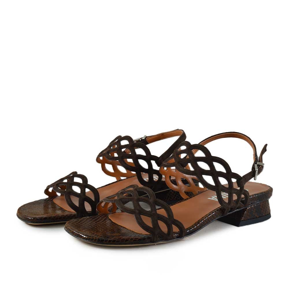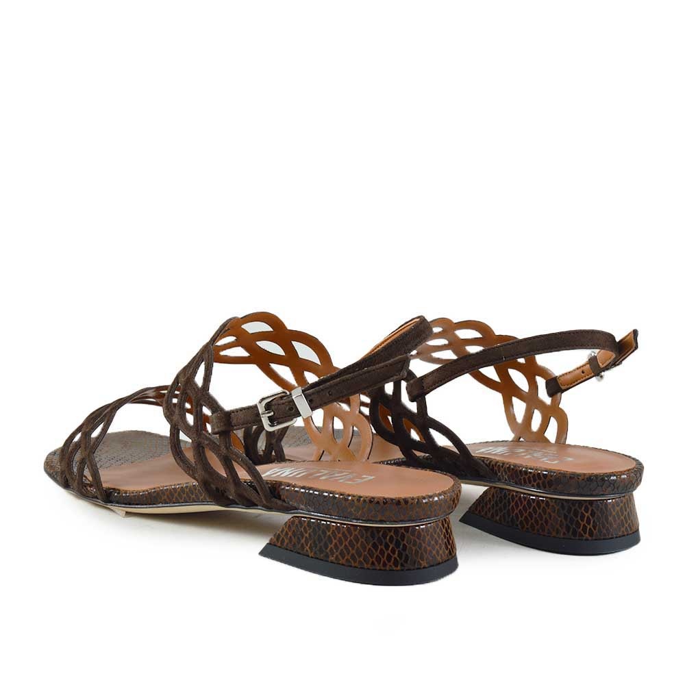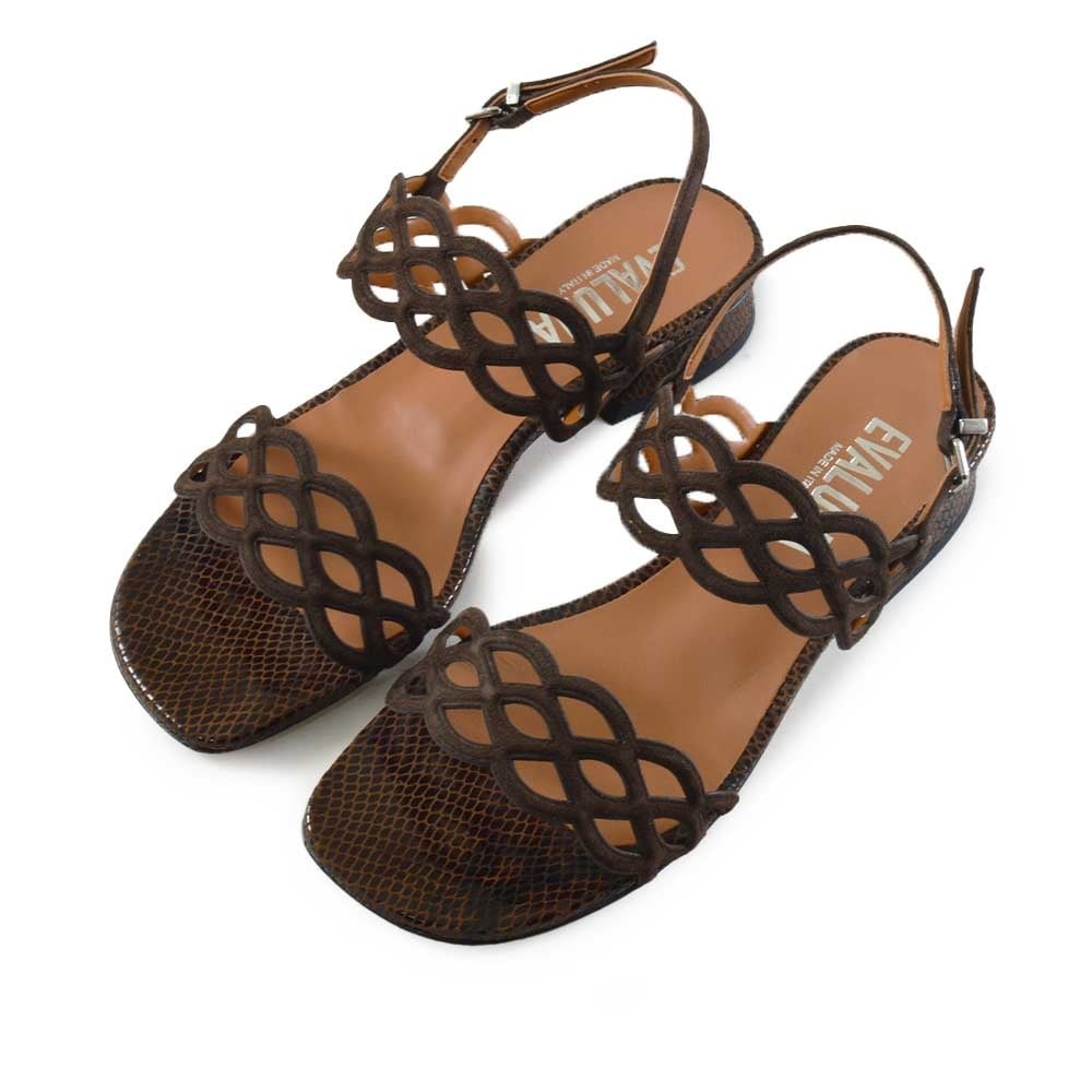 Eva Luna G171 bruin dames sandaal met elegante details en lizard print voetbed. Perfecte zomersandaal voor vakantie en stijlvolle outfits.