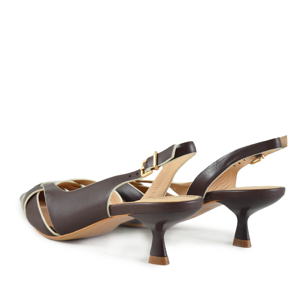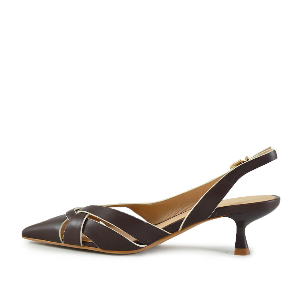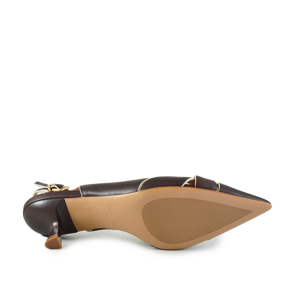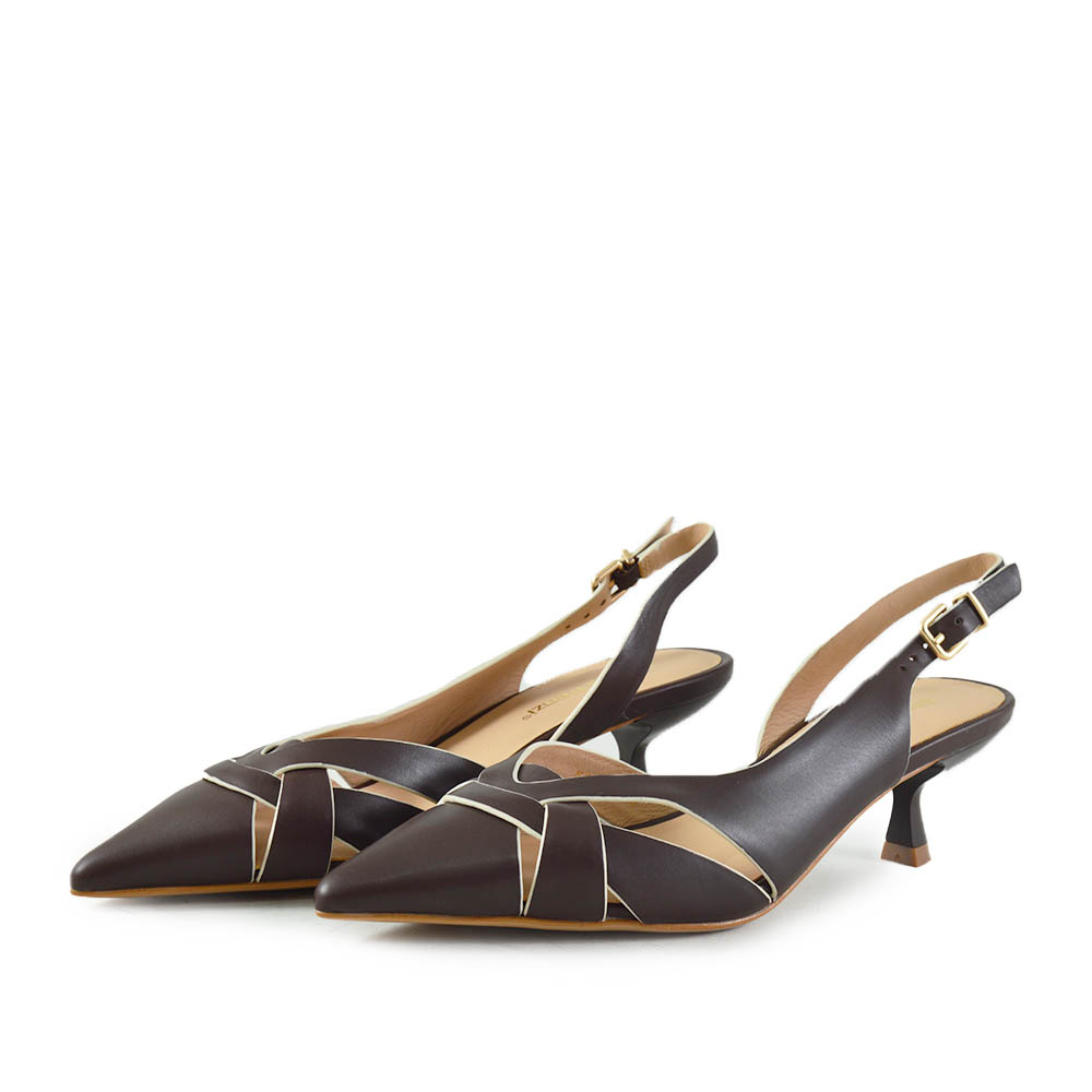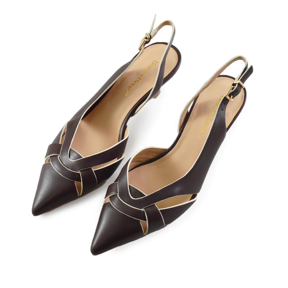 De Gianni Renzi Gigi Bruin is een elegante dames slingback die direct de aandacht trekt. Gemaakt van hoogwaardig Bruin leer, straalt deze schoen verfijning uit en past hij perfect bij zomerse chique outfits. De spitse leest geeft een slanke en vrouwelijke uitstraling, ideaal voor zowel kantoor als speciale gelegenheden.