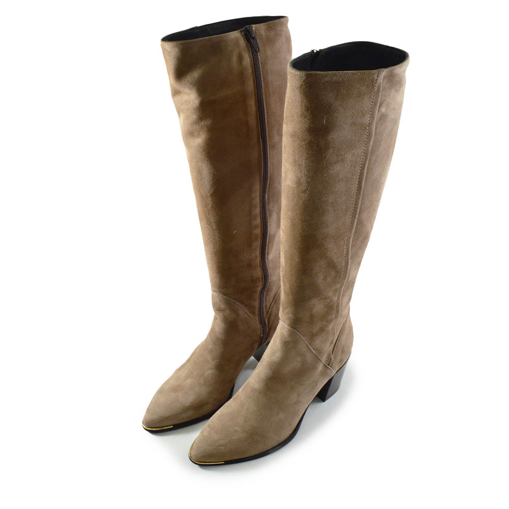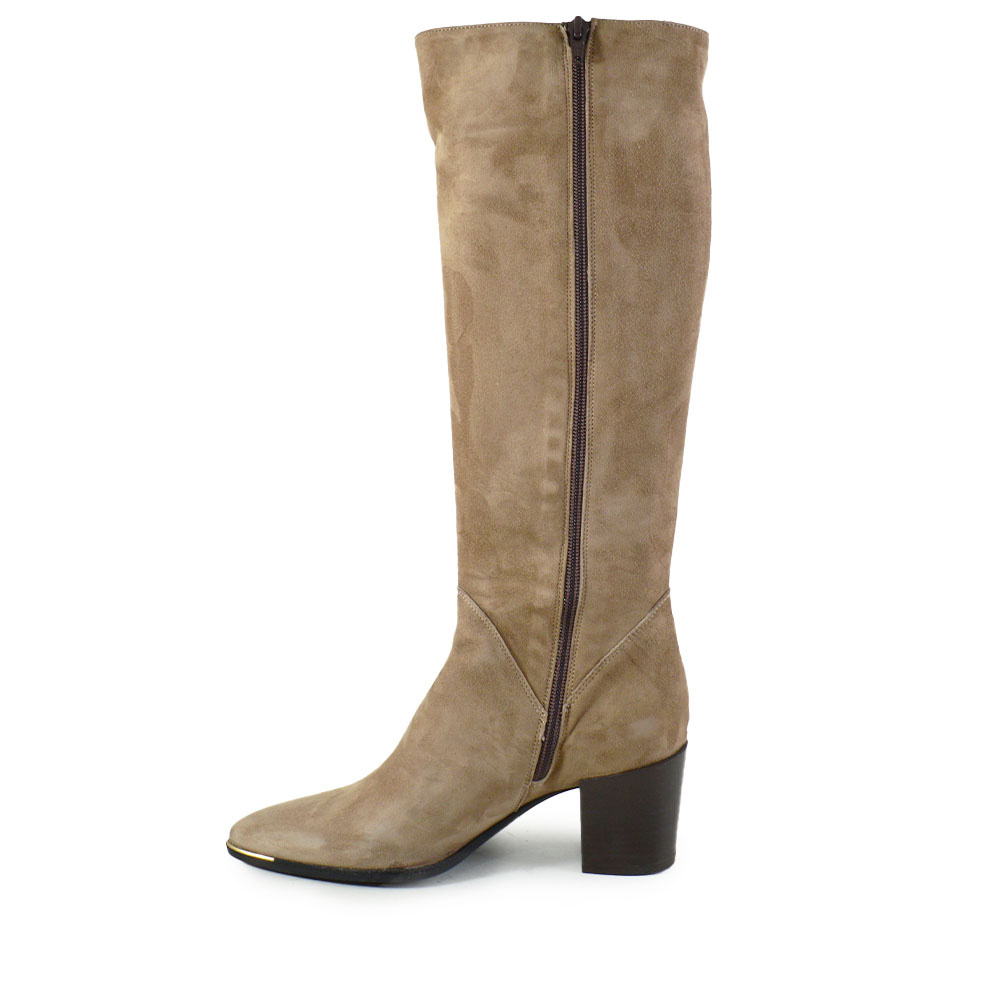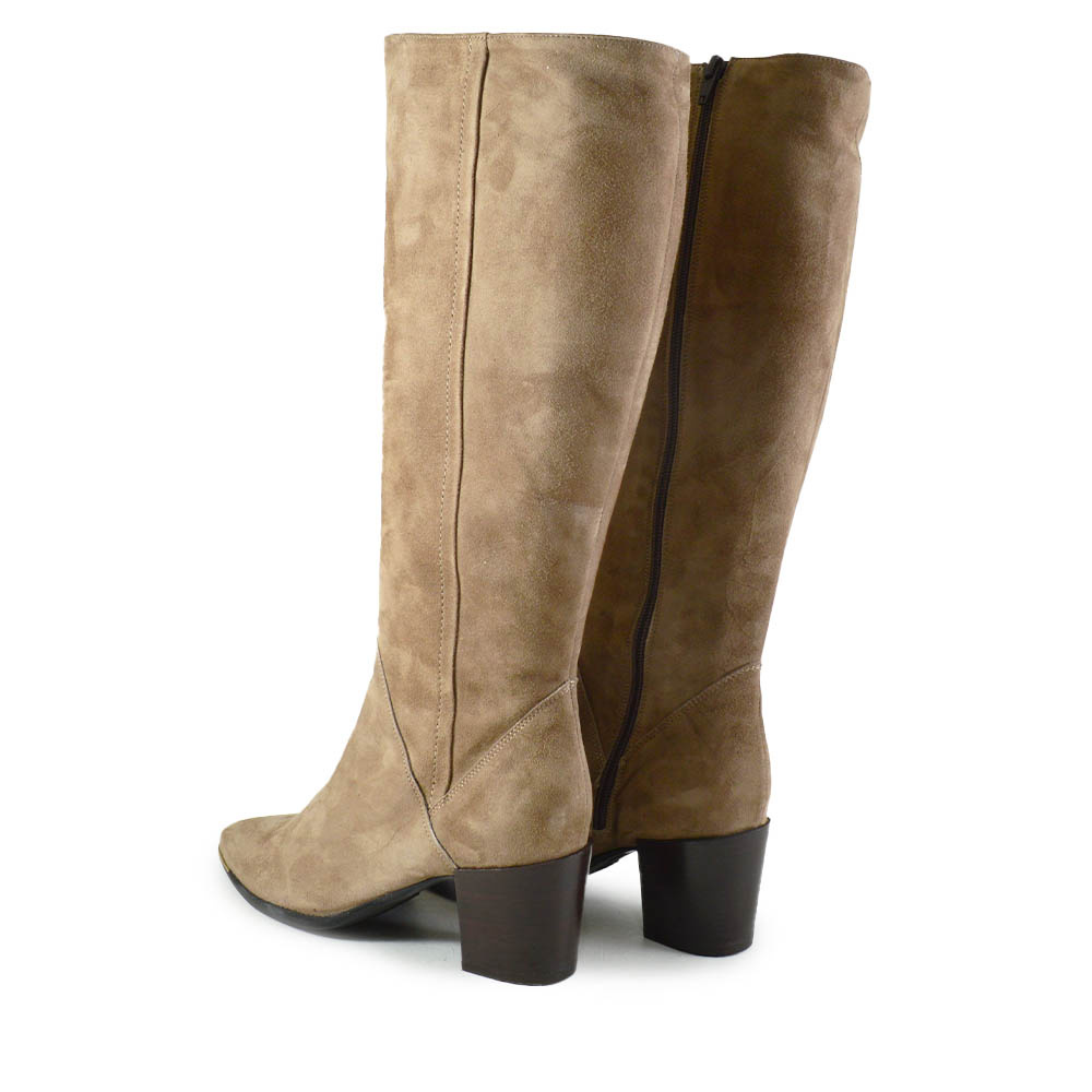 De binnenvoering is vervaardigd van soepel leer, wat zorgt voor een prettig en ademend gevoel tijdens het dragen. De hoge suède schacht omsluit het been prachtig en benadrukt een slank silhouet. Deze beige suède dameslaars is geschikt voor ieder seizoen en combineert moeiteloos met jurken, rokken of skinny jeans. Voeg met de Trento Golden High een tijdloos en stijlvol paar laarzen toe aan je garderobe – perfect voor iedere gelegenheid.