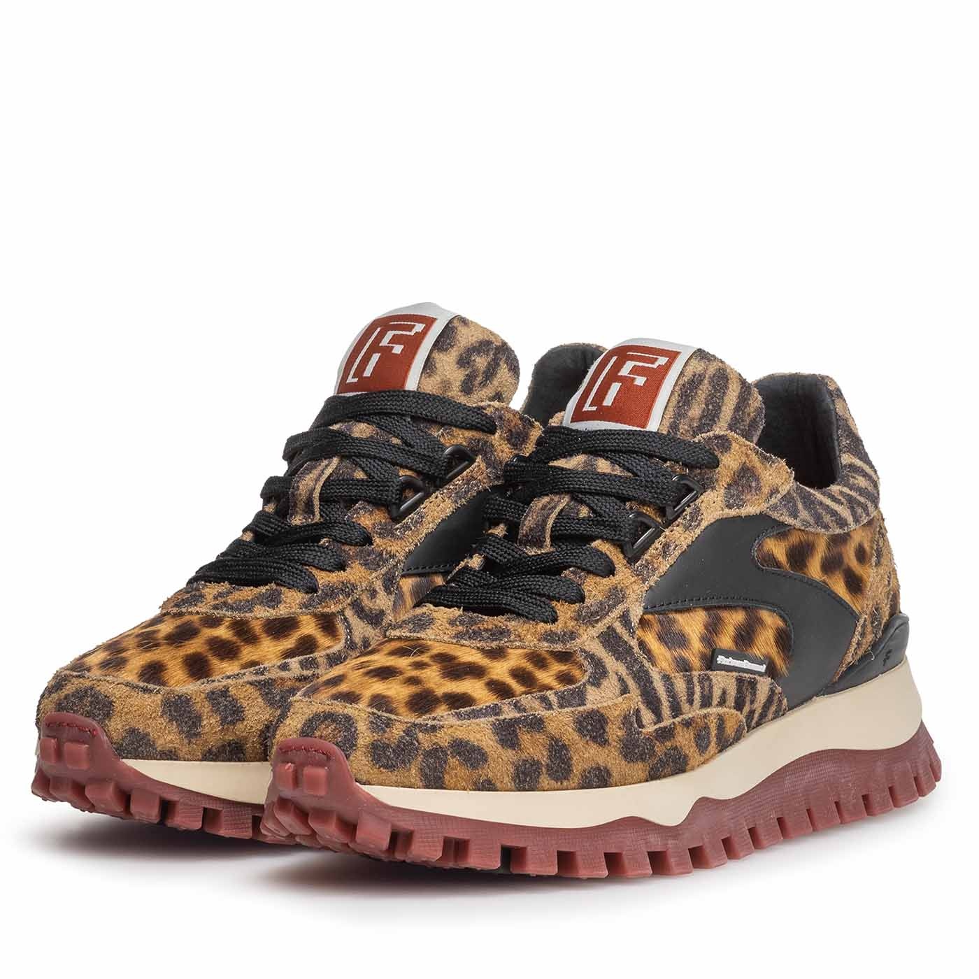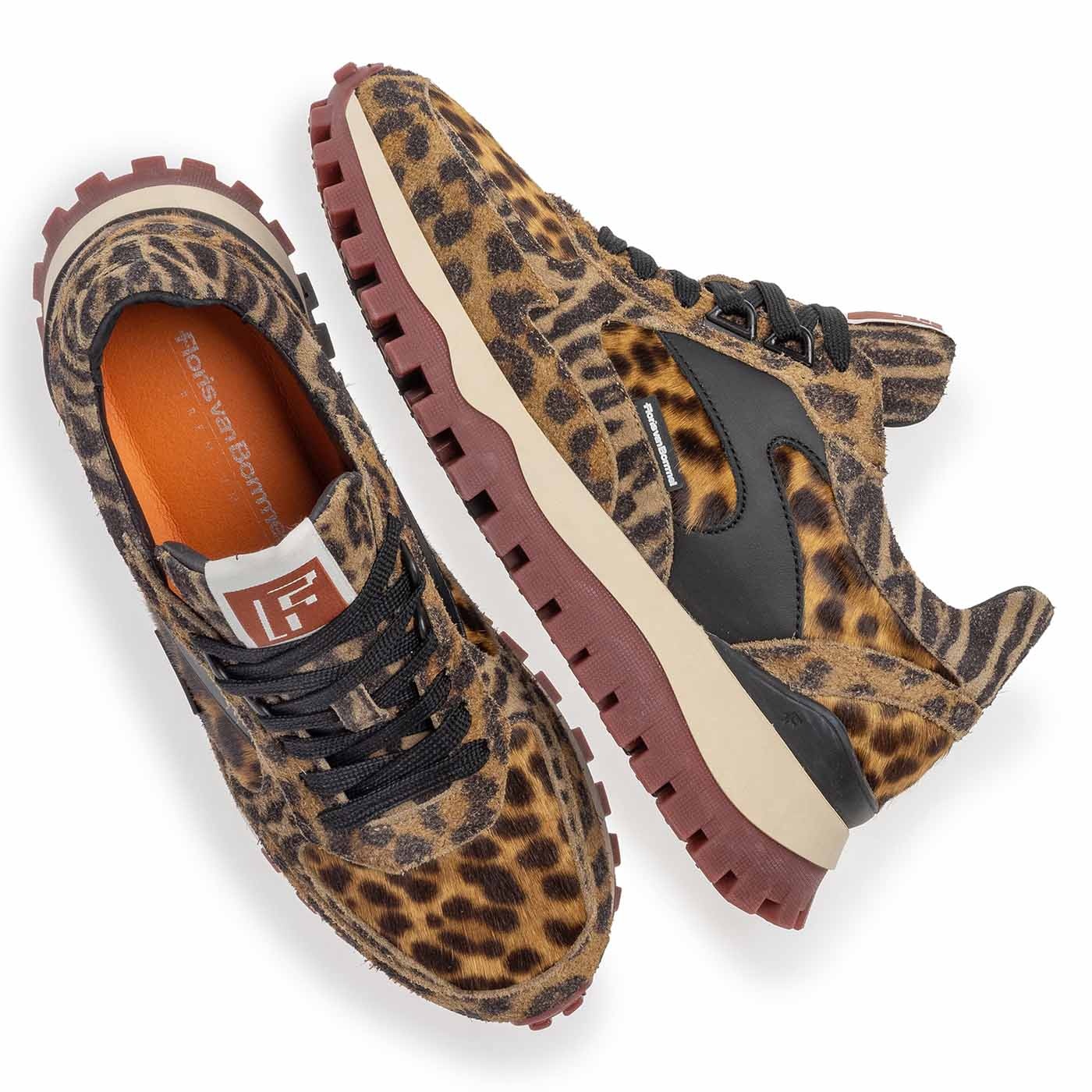 De Floris van Bommel Grommi 04.00 is een opvallende dames sneaker met een unieke bruine leopard print. Deze sneaker is perfect voor vrouwen die stijl en comfort willen combineren met een eigenzinnige touch. Het bijzondere pony leer geeft de schoen een luxe uitstraling en zorgt voor een zacht en prettig gevoel aan je voeten.