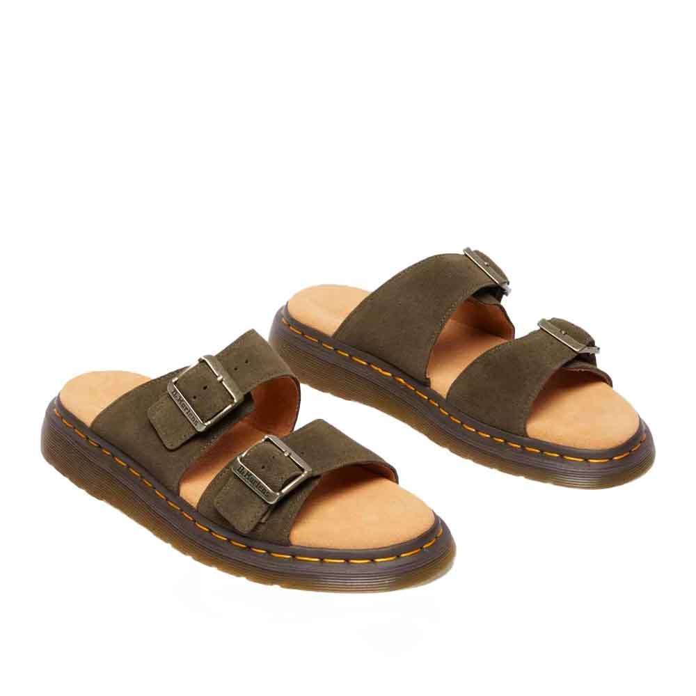 De Dr. Martens Josef Groen is een stoere dames sandaal die perfect past bij jouw edgy zomerstijl. Deze sandaal is gemaakt van zacht Groen suède leer en voorzien van twee brede banden die stevig om je voet zitten. Het minimalistische ontwerp wordt versterkt door de herkenbare details van Dr. Martens.