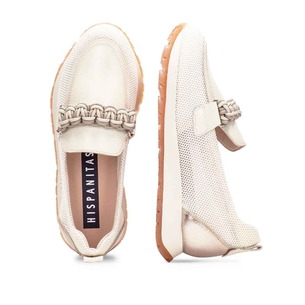 Wat deze instapper extra aantrekkelijk maakt, is de comfortabele sneakerzool die zorgt voor een uitstekende demping en flexibiliteit. De lichte zool maakt het dragen van de Hispanitas Kylie Kansas Beige ideaal voor dagelijks gebruik, met een perfecte balans tussen stijl en comfort. Deze zool biedt niet alleen steun, maar zorgt er ook voor dat je de hele dag comfortabel kunt lopen.