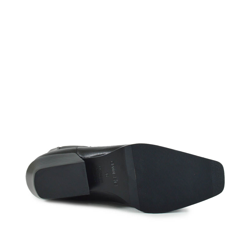 De Gianni Renzi Lucente Zwart Leer is een verfijnd dames enkellaarsje dat luxe en comfort samenbrengt. Het hoogwaardige zwarte leer geeft deze enkellaars een tijdloze uitstraling, perfect voor stijlvolle winter outfits. Het Italiaanse design staat garant voor een elegante leest en een perfecte pasvorm.