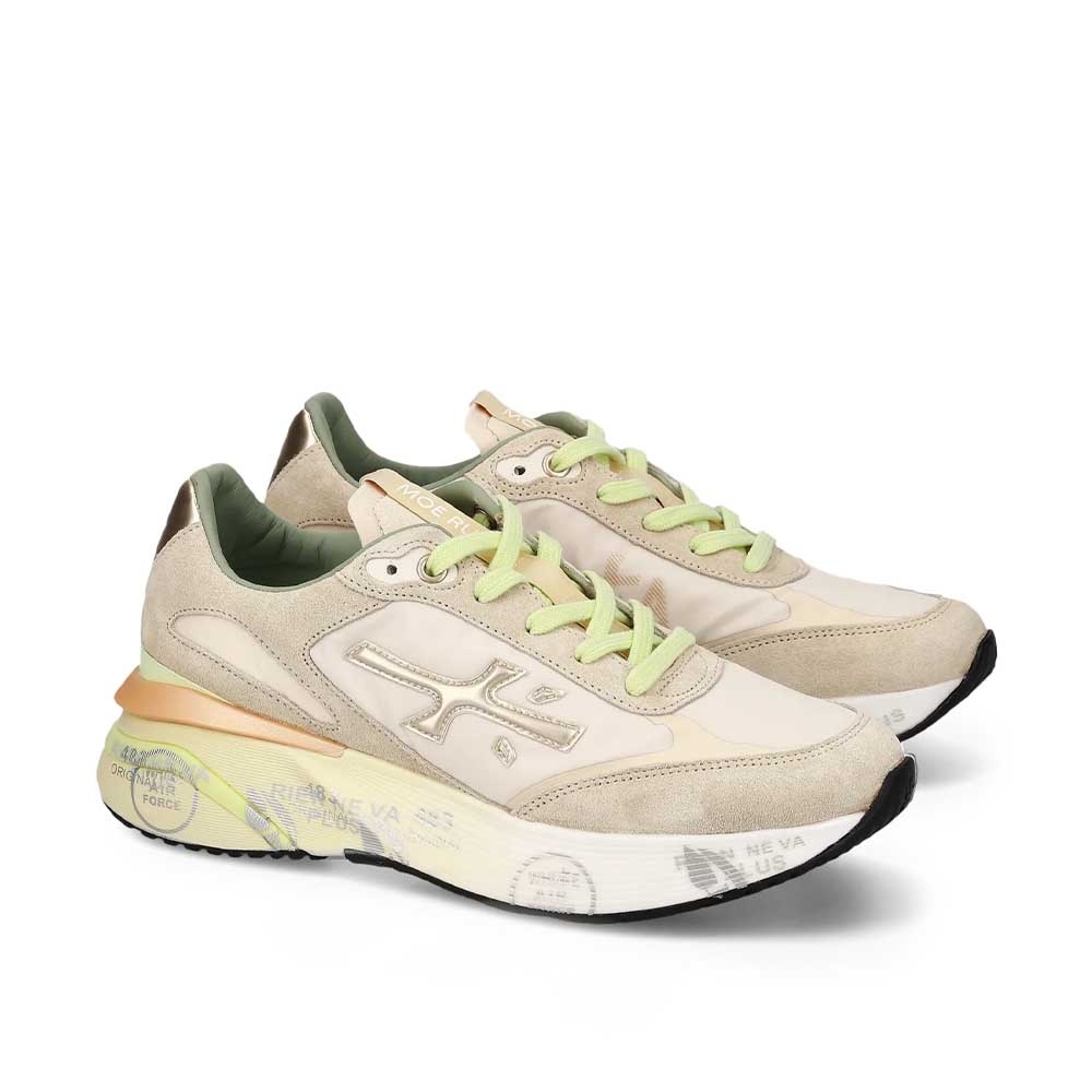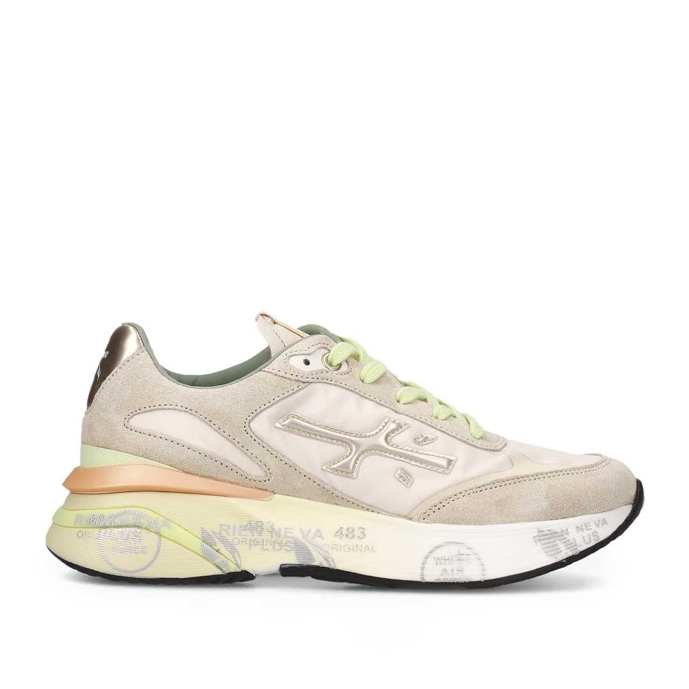 De Premiata Moerund 7466 Beige is dé perfecte sneaker voor dames die op zoek zijn naar een unieke en opvallende schoen. De combinatie van beige tinten met de iconische Premiata details maakt deze sneaker een echte must-have. De gave teksten op de zool geven een speelse en luxe uitstraling.