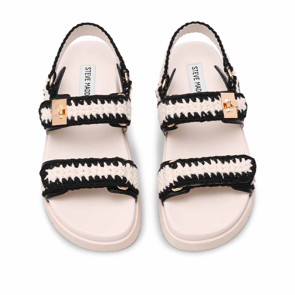 De Steve Madden Mona zwart beige dames sandaal is een echte must-have voor de zomer. De combinatie van zwart en beige tinten zorgt voor een frisse en modieuze uitstraling. Het speelse ontwerp met geweven details geeft deze sandaal een eigentijdse look die perfect aansluit bij de laatste trends.