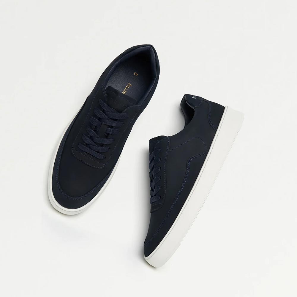 De Filling Pieces Mondo 2.0 is een lage heren sneaker die stijl en comfort moeiteloos combineert. Het nubuck leren bovenwerk in een diepe blauwe kleur geeft de schoen een moderne en nette uitstraling. Dankzij het minimalistische ontwerp en de strakke afwerking is deze sneaker perfect te combineren met zowel casual als smart casual outfits.