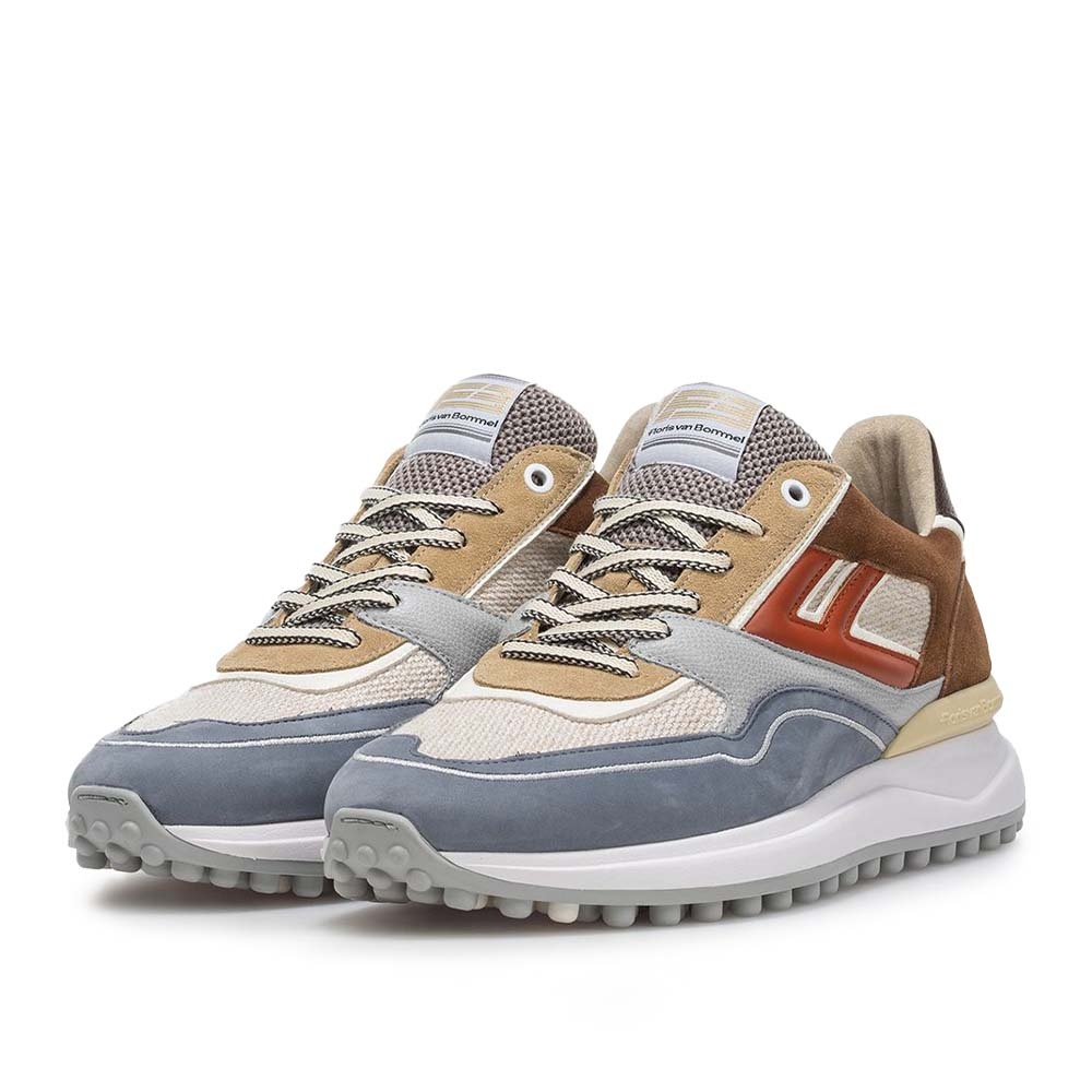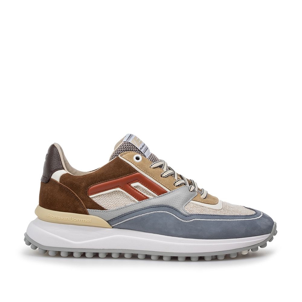 Floris van Bommel Noppi 29.55 multi blauwe heren sneaker met sportieve Noppi zool, groot F-design, luxe details en uitneembaar voetbed.