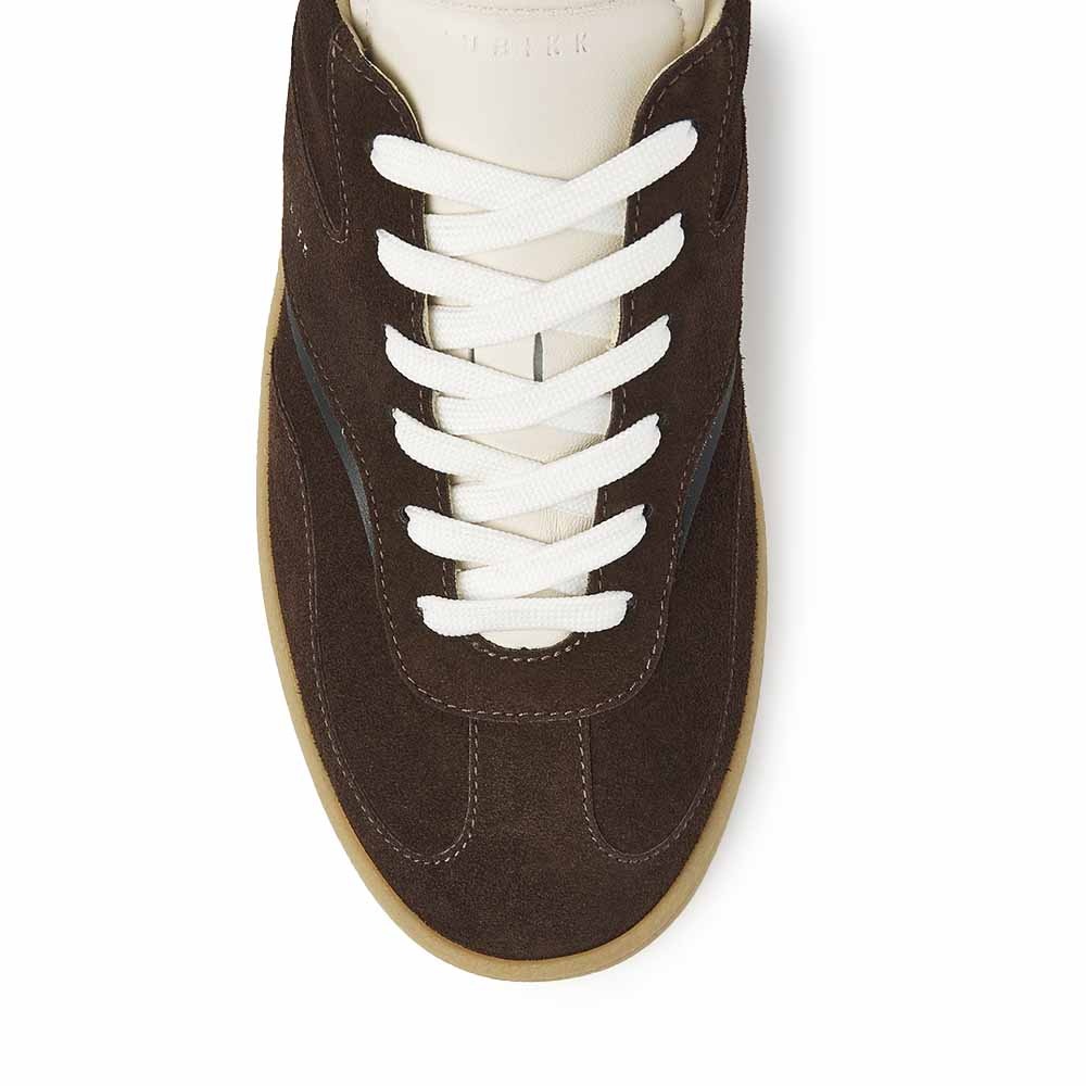 De Nubikk Ray Owen (M) Bruin suede platte heren sneaker is dé keuze voor de moderne man. Het zachte bruine suede bovenwerk in combinatie met de lichte veters geeft de schoen een verfijnde uitstraling. Deze Nubikk sneaker past perfect bij een casual outfit met bijvoorbeeld een wijde broek en is ideaal voor elke gelegenheid.