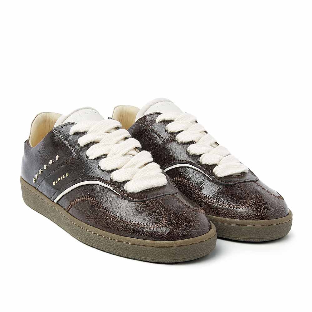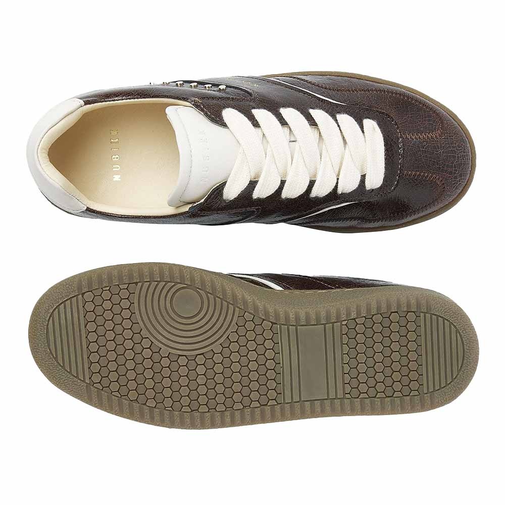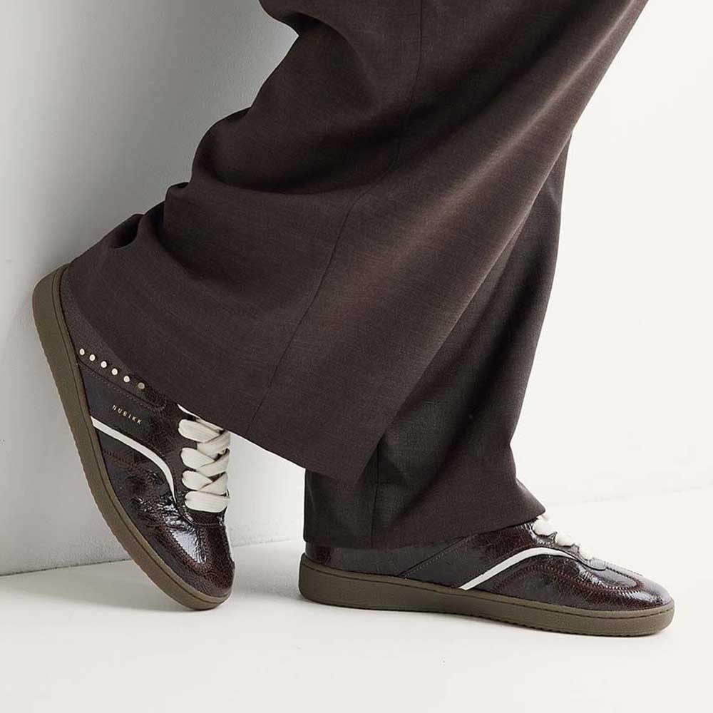 De Nubikk Ray Owen Studs (L) Bruin leren dames sneaker is de perfecte combinatie van stijl en comfort. Deze bruine leren sneaker heeft een stoere vintage uitstraling die moeiteloos te combineren is met zowel casual als geklede outfits. De unieke dikke veters geven de sneaker een eigen karakter en maken elke look net even anders.