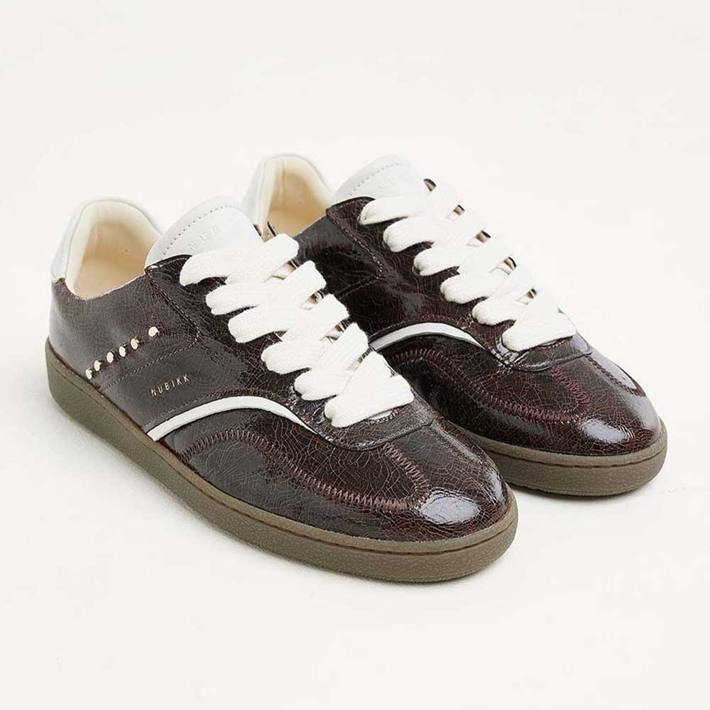 De Nubikk Ray Owen Studs (L) is ontworpen voor vrouwen die van stoere, maar stijlvolle schoenen houden. Dankzij het zachte leer vormt de sneaker zich mooi naar je voet en biedt hij een uitstekende pasvorm. Maak je outfit compleet met deze must-have bruine leren sneaker van Nubikk.