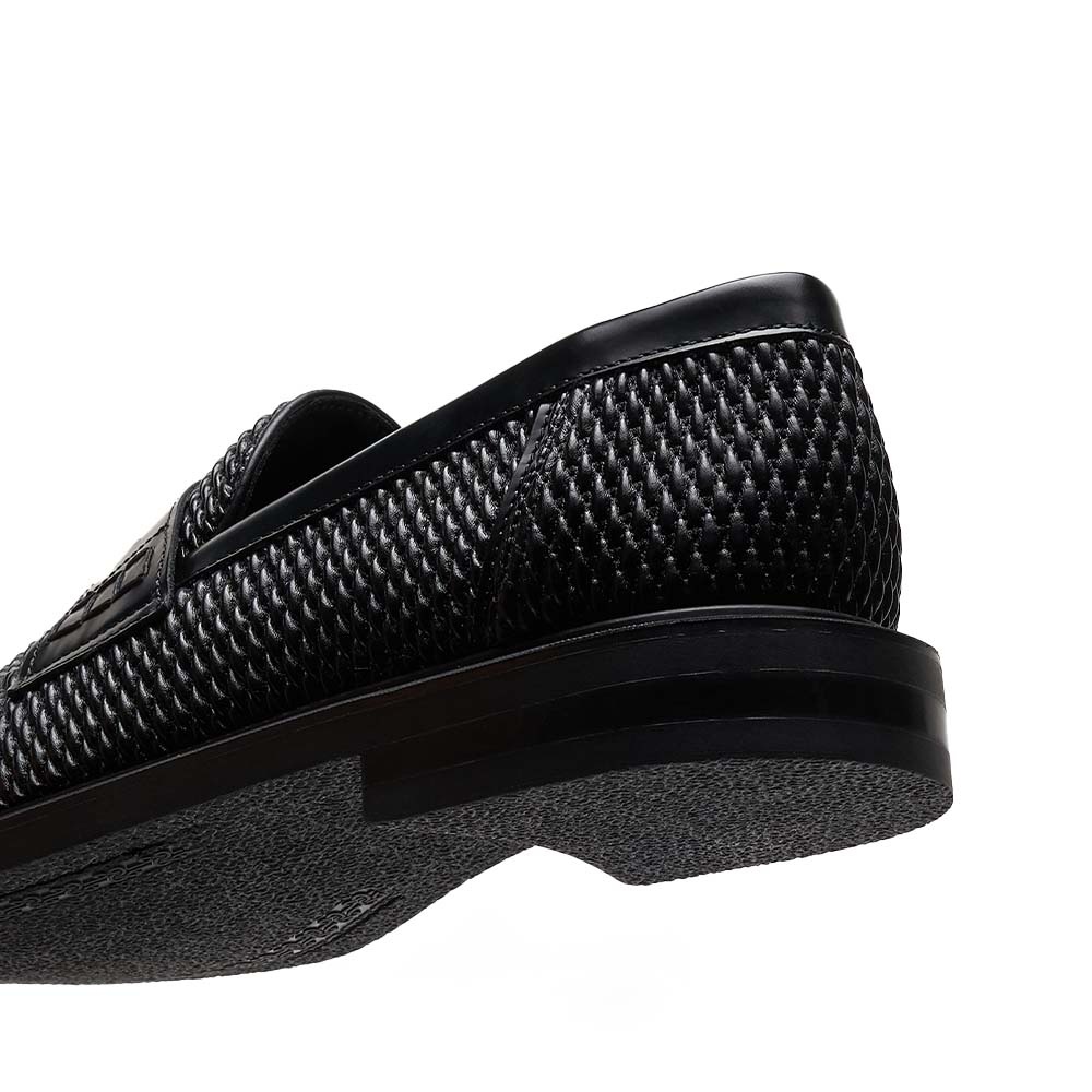 De Filling Pieces Reed Zwart is een moderne heren loafer met een opvallend ruitpatroon over het gehele bovenwerk. Dit stijlvolle detail in combinatie met de ronde leest geeft de schoen een elegante, eigentijdse uitstraling. Gemaakt van hoogwaardig veganistisch leer is deze loafer een bewuste keuze zonder in te leveren op luxe.