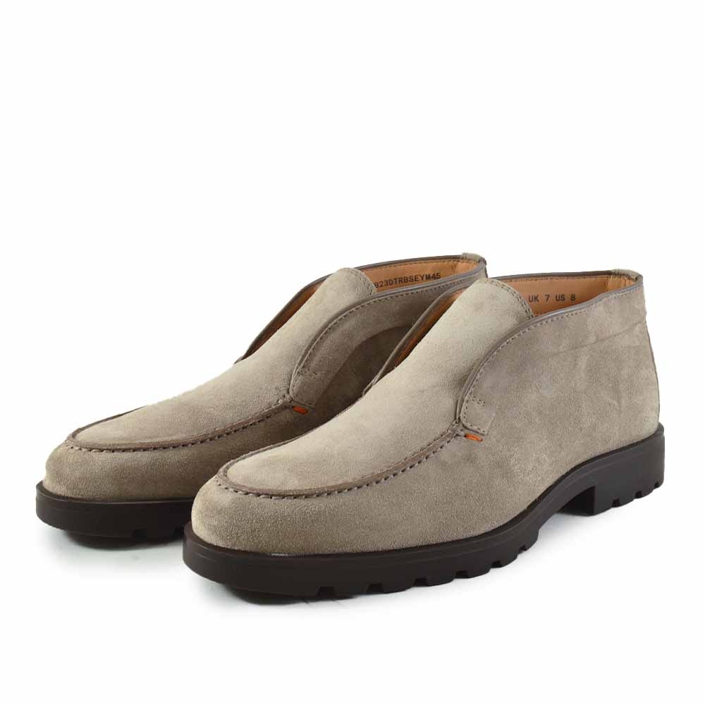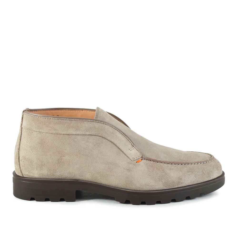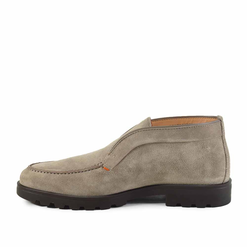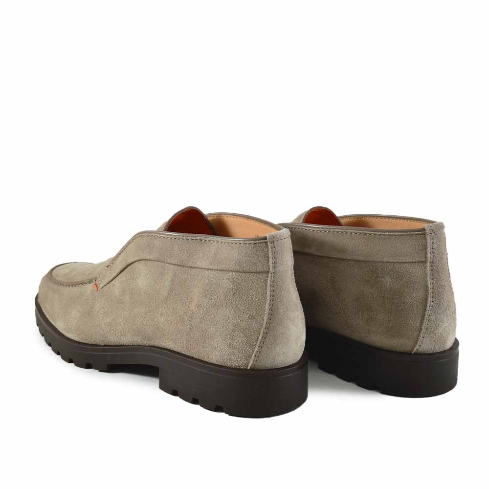 De Santoni Rock Beige is een moderne half hoge heren loafer die vakmanschap en stijl perfect combineert. Deze elegante schoen is gemaakt van hoogwaardig beige suede, wat zorgt voor een verfijnde, maar tegelijkertijd robuuste uitstraling. De grove, stoere zool geeft deze loafer een eigentijdse en modieuze look, perfect voor de modebewuste man.