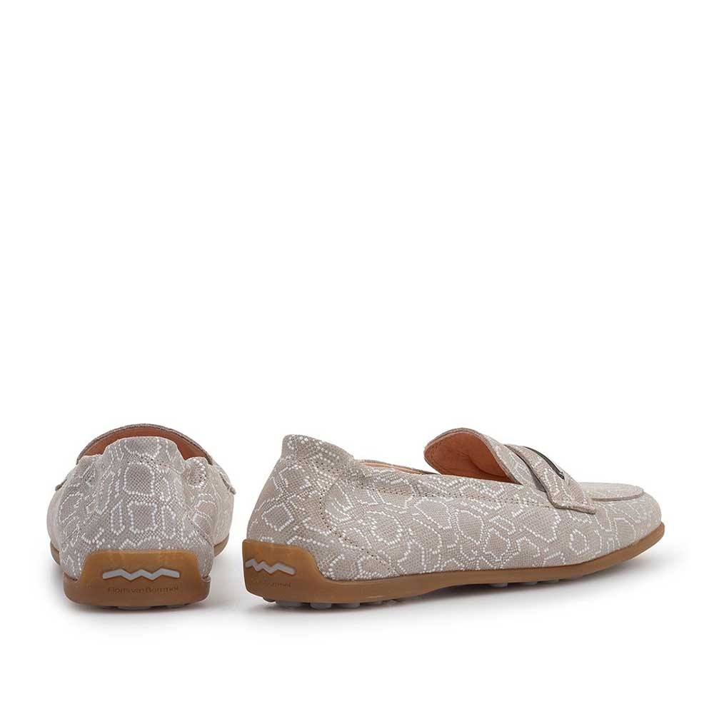 De Floris van Bommel Sitti 03.07 Taupe is een elegante loafer voor dames die een combinatie van stijl en comfort waarderen. De taupe kleur geeft de schoen een tijdloze uitstraling, terwijl de unieke print over de gehele schoen zorgt voor een opvallend en modieus detail. Deze loafer is een echte eyecatcher en past bij zowel casual als chique outfits.